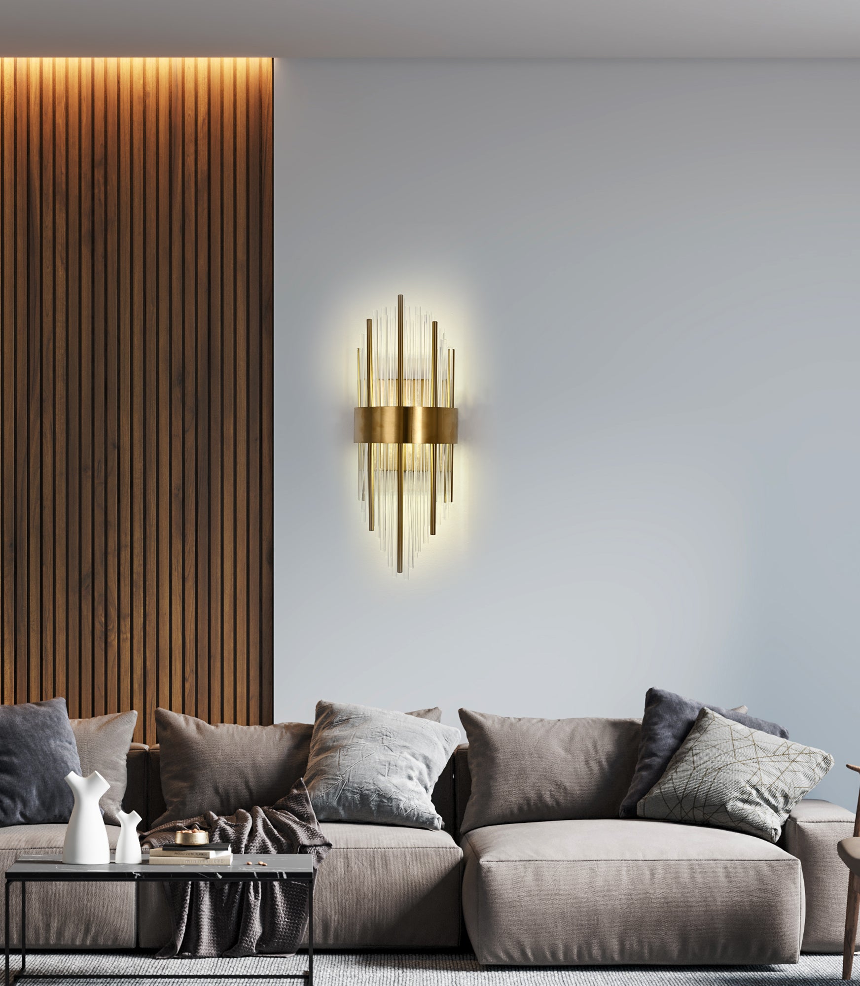 Aplica Textura Cristal, Metal, 2 X E14, Auriu