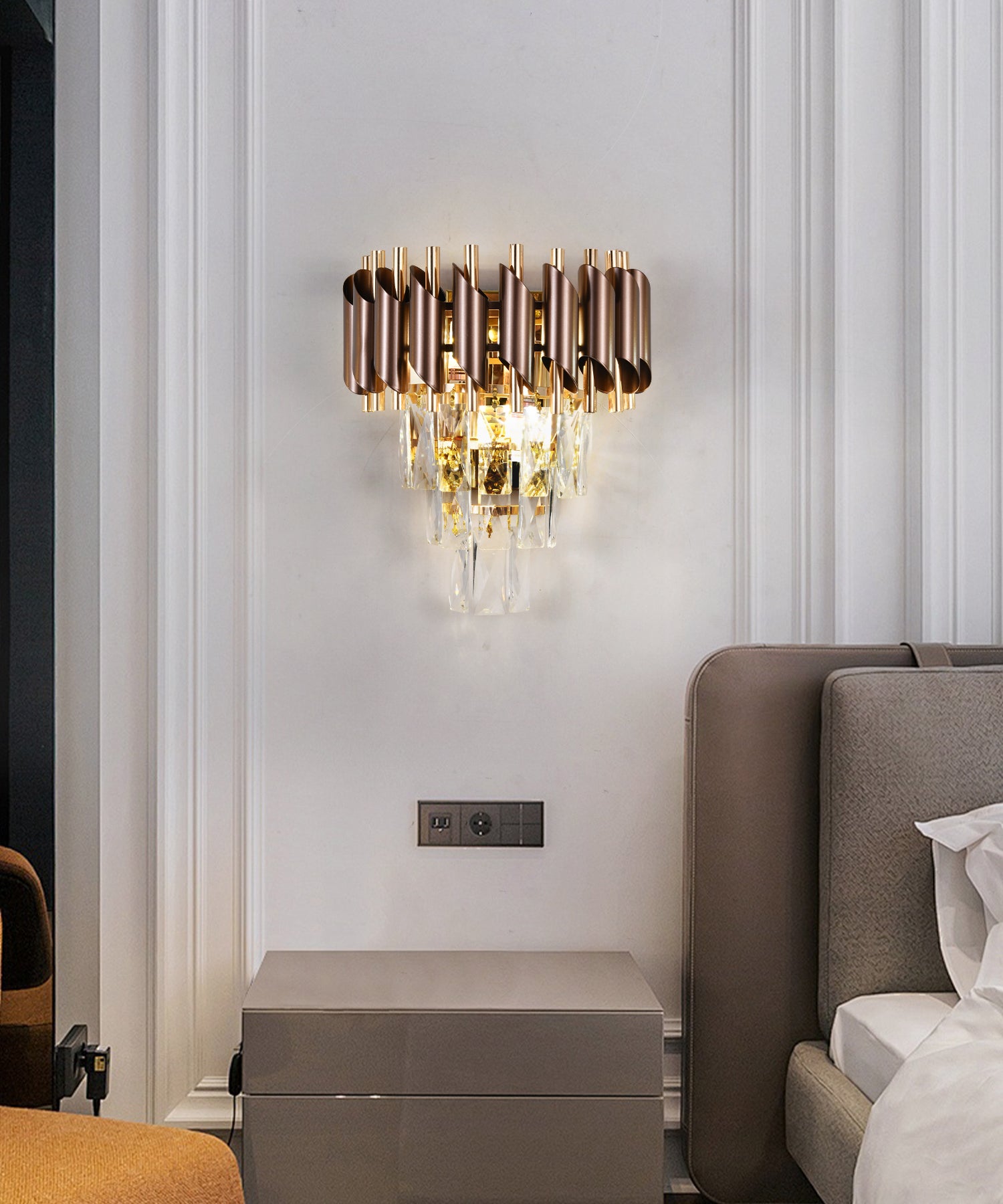 Aplica Textura Cristal, Metal, 2 X E27, Maro/Auriu