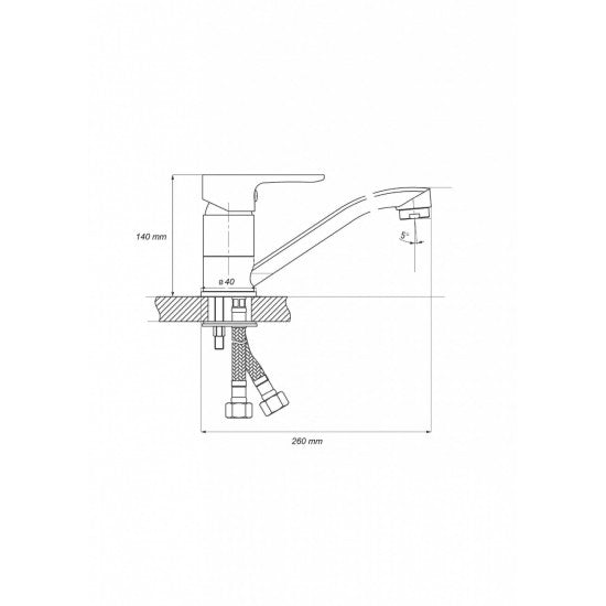 Este dotat cu cartus ceramic cu diametru de 35 mm, maner din metal, aerator, racorduri flexibile de conectare la apa calda si rece cu lungimea de 400 mm.