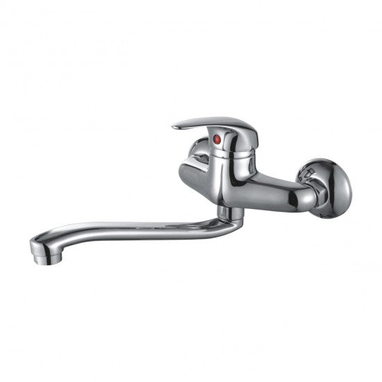 Este o baterie conceputa pentru montarea pe perete, are un design clasic și finisaj cromat, cu țeavă de scurgere mobilă, lungime 240 mm.