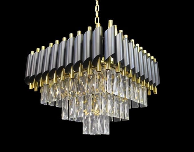 Candelabru RFAN, Model S9001/400x400, Textura Cristal, Metal, 5 X E27, Negru/Auriu