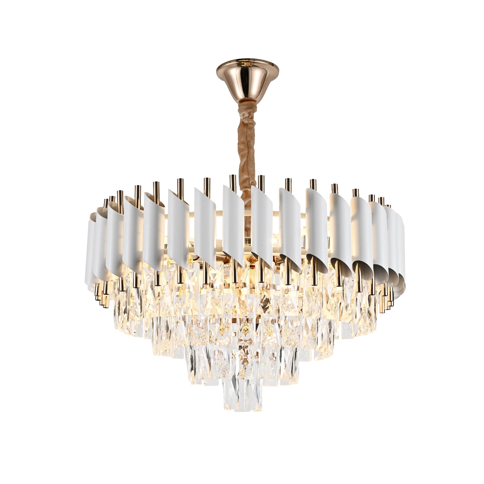 Candelabru RFAN, Model S9001/600, Textura Cristal, Metal, 10 X E27, Alb/Auriu