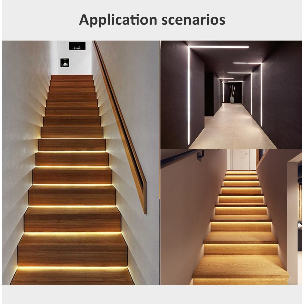 Se poate folosi in mai multe scenarii, fie cu benzi led pe pereti/tavane fie la scari.