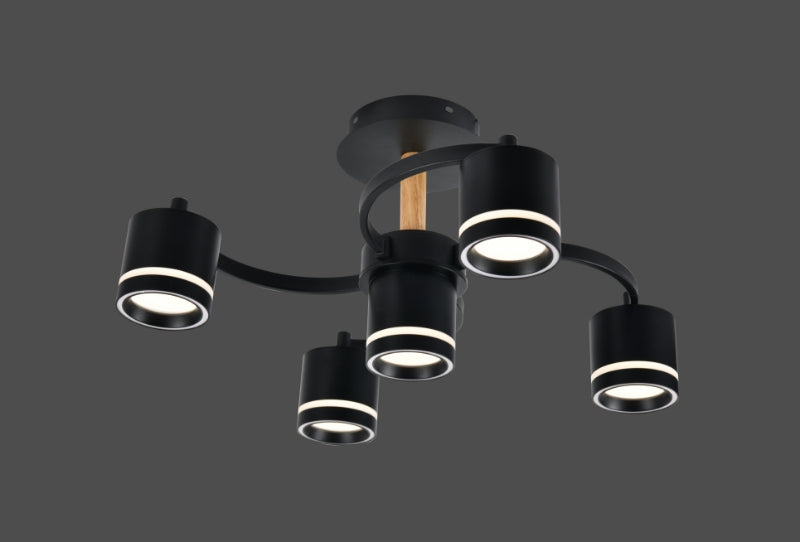 Lustra 5 X Bec LED, GX53, 3 Tipuri De Lumina, 60W, Negru