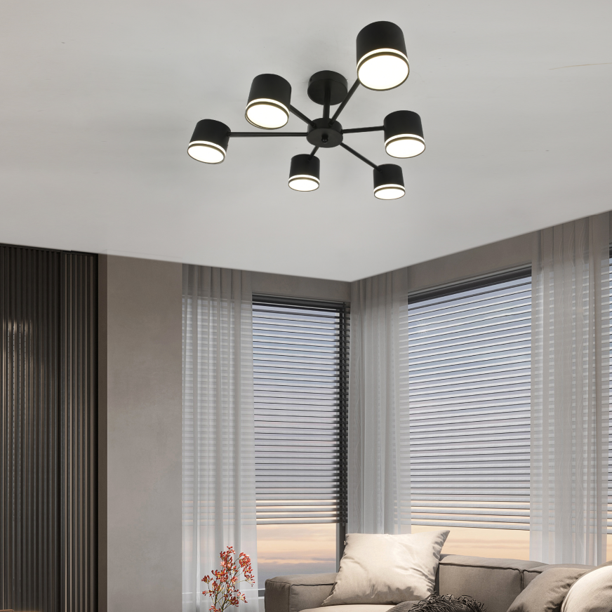 Lustra 6 X Bec LED, GX53, 3 Tipuri De Lumina, 72W, Negru