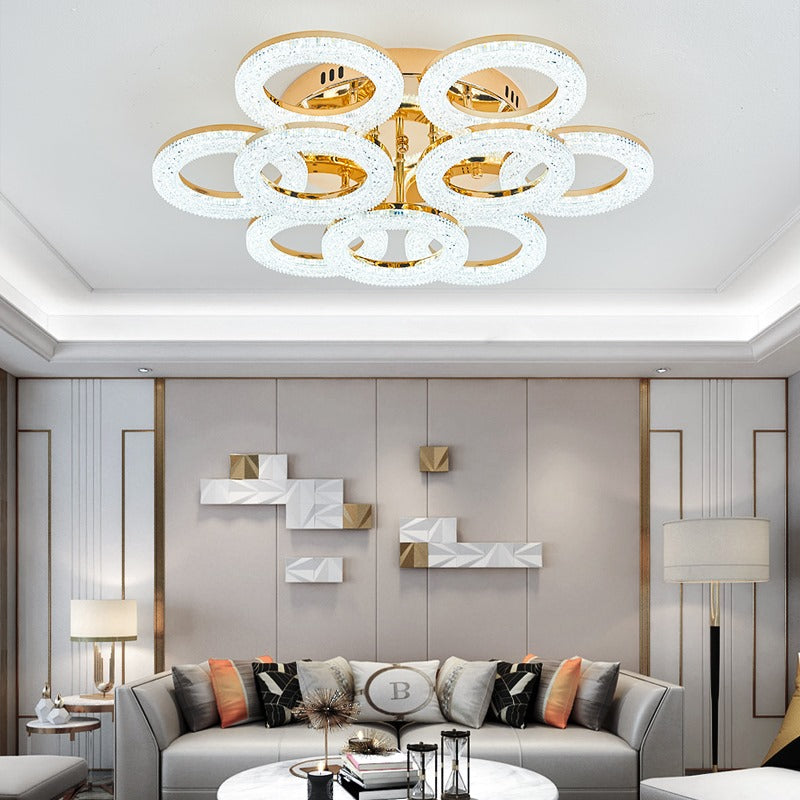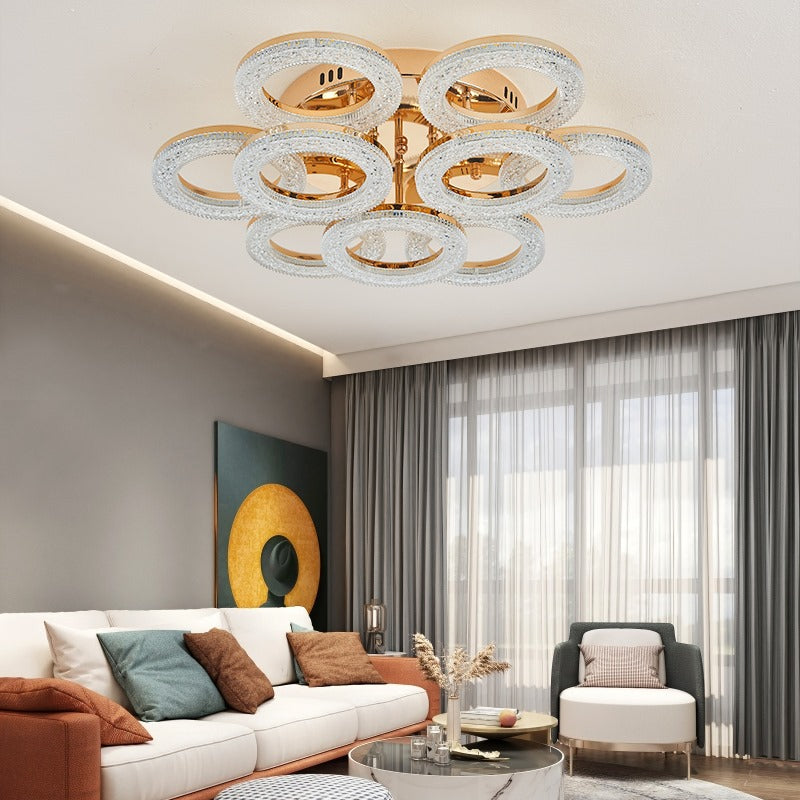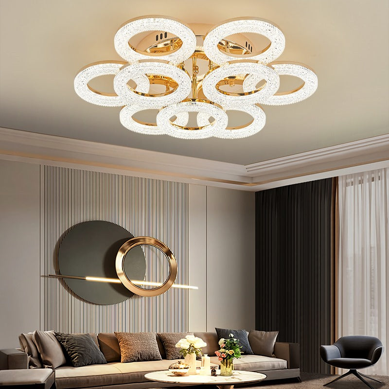 Lustra LED, Cu Telecomanda, 3 Tipuri De Lumina, Intensitate Reglabila, 180W, Auriu