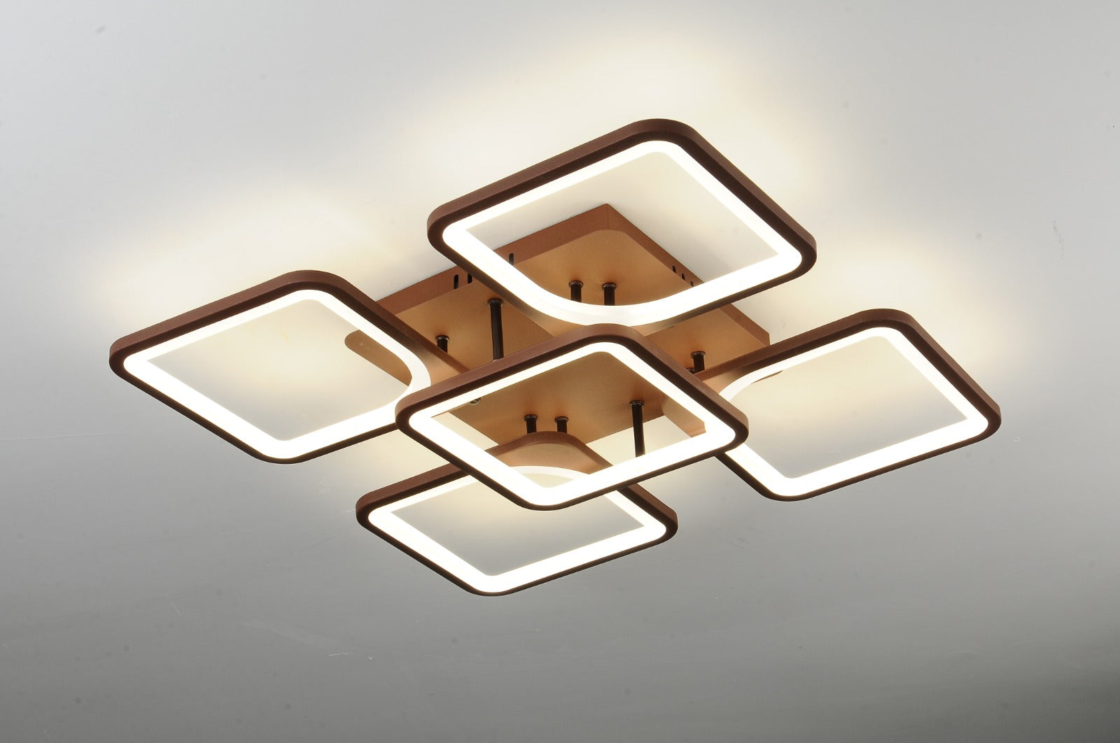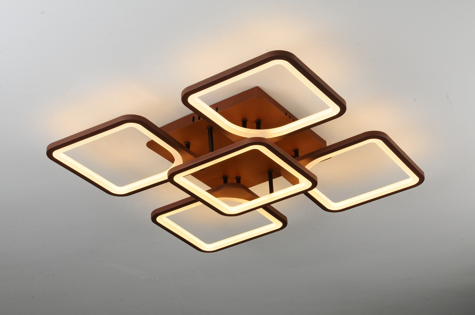 Lustra LED, cu Telecomanda, 3 Tipuri de Lumina, Intensitate Reglabila, 182W, Maro