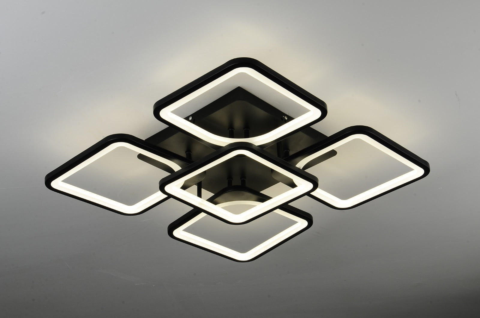 Lustra LED, cu Telecomanda, 3 Tipuri de Lumina, Intensitate Reglabila, 182W, Negru
