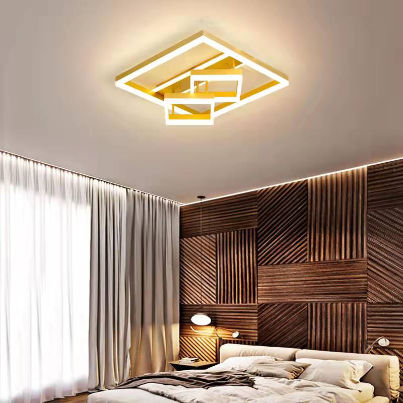 Lustra LED, cu Telecomanda, 3 Tipuri de Lumina, Intensitate Reglabila, 188W, Auriu
