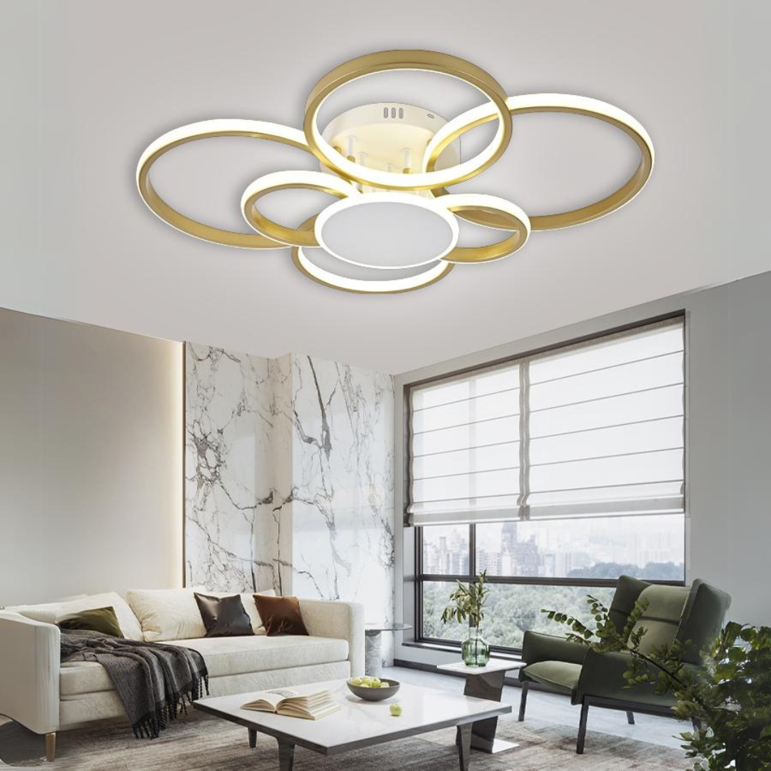 Lustra LED, cu Telecomanda, 3 Tipuri de Lumina, Intensitate Reglabila, 196W, Auriu