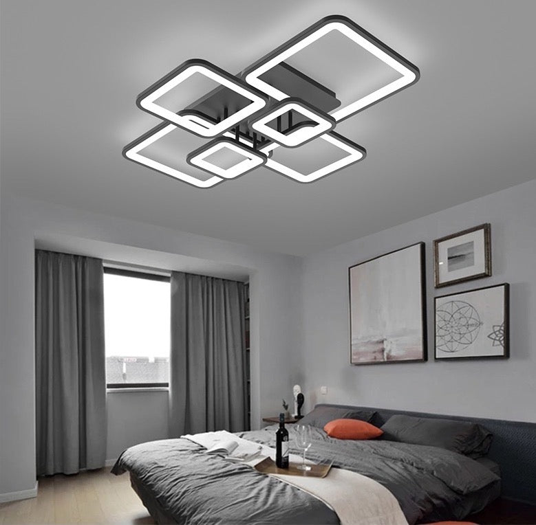 Lustra LED, Cu Telecomanda, 3 Tipuri De Lumina, Intensitate Reglabila, 228W, Negru