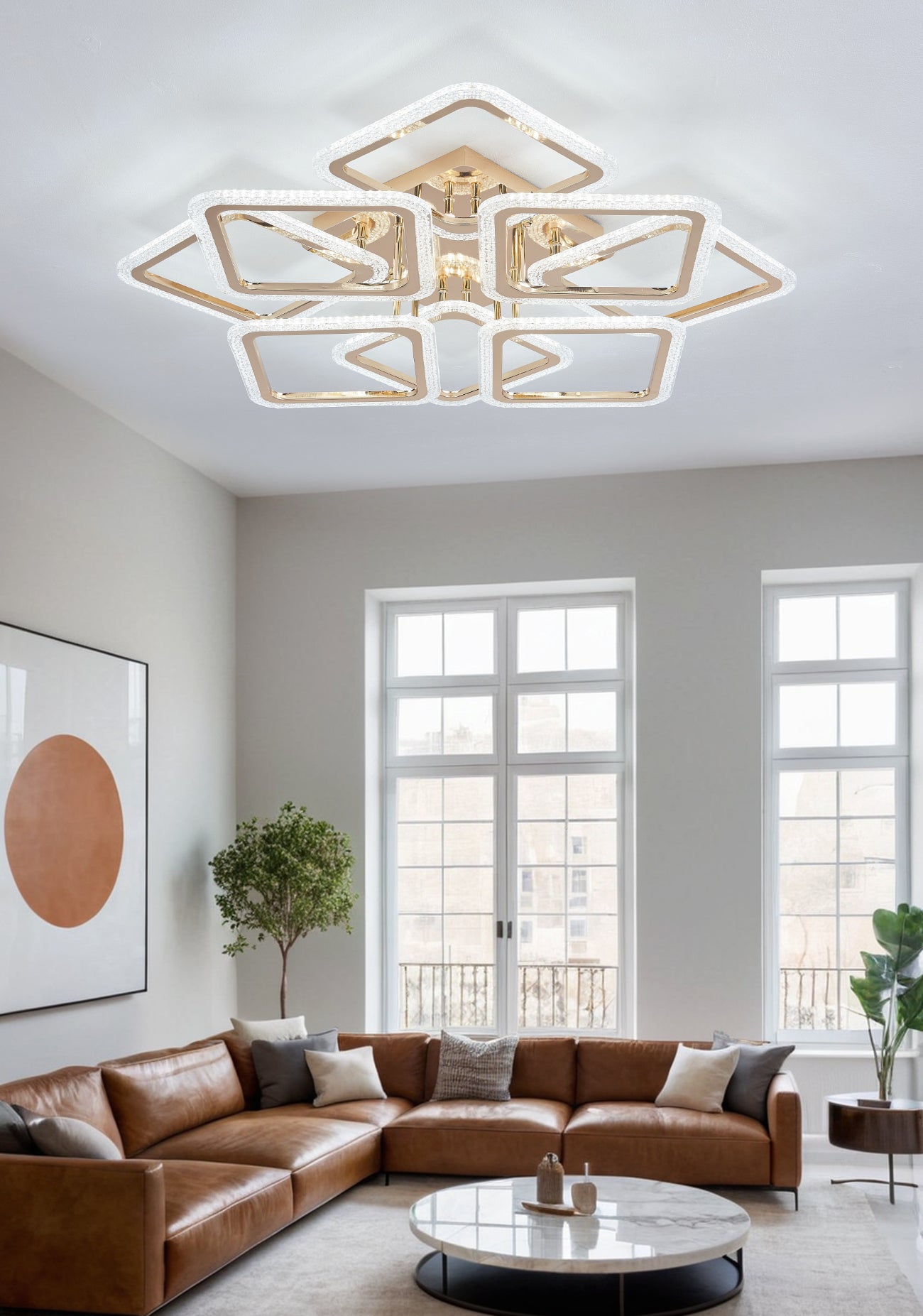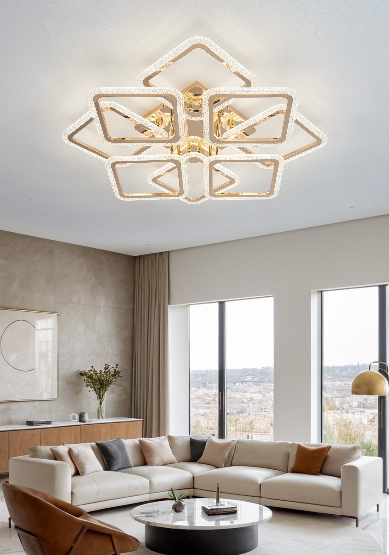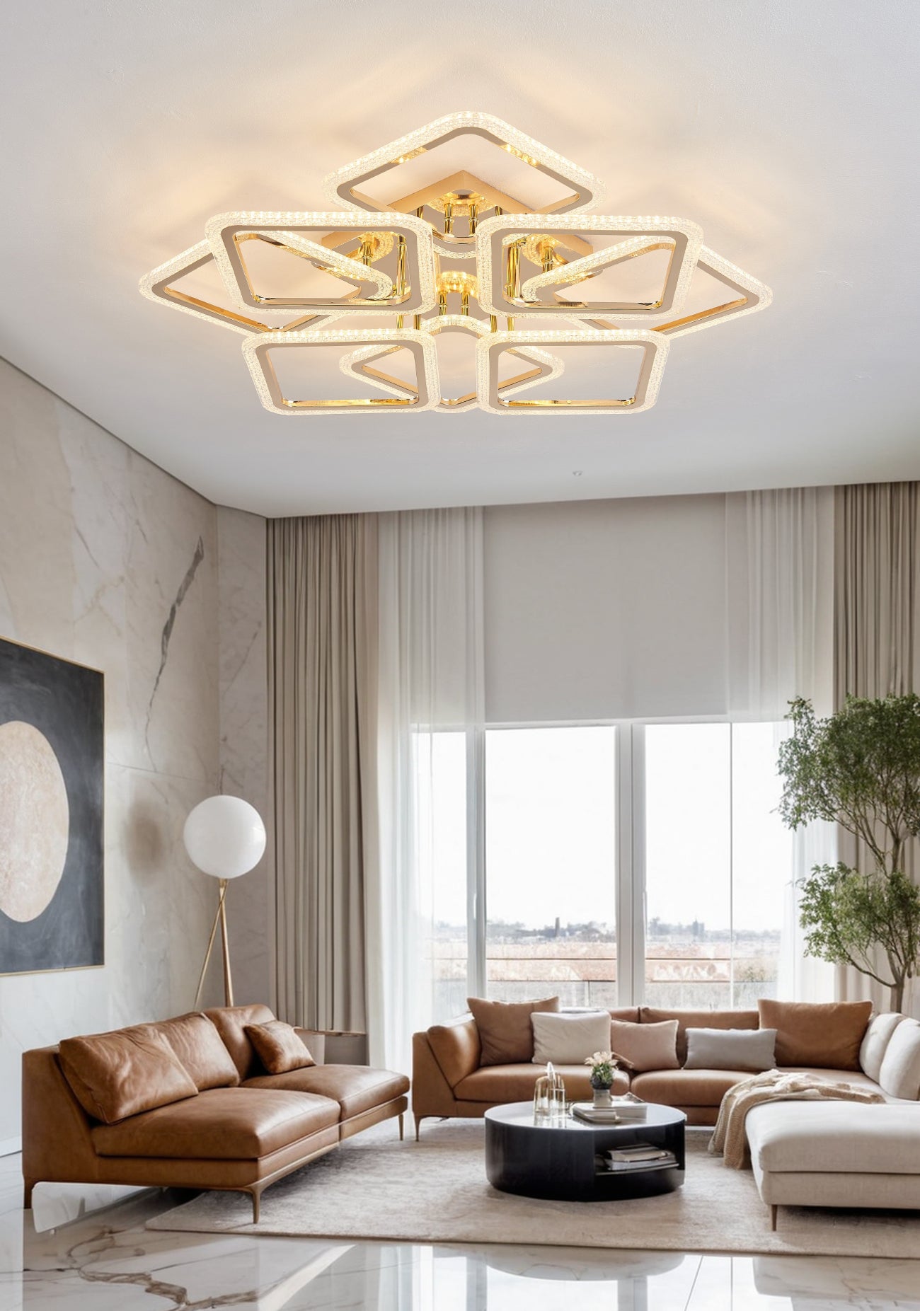 Lustra LED, Cu Telecomanda, 3 Tipuri De Lumina, Intensitate Reglabila, 240W, Auriu