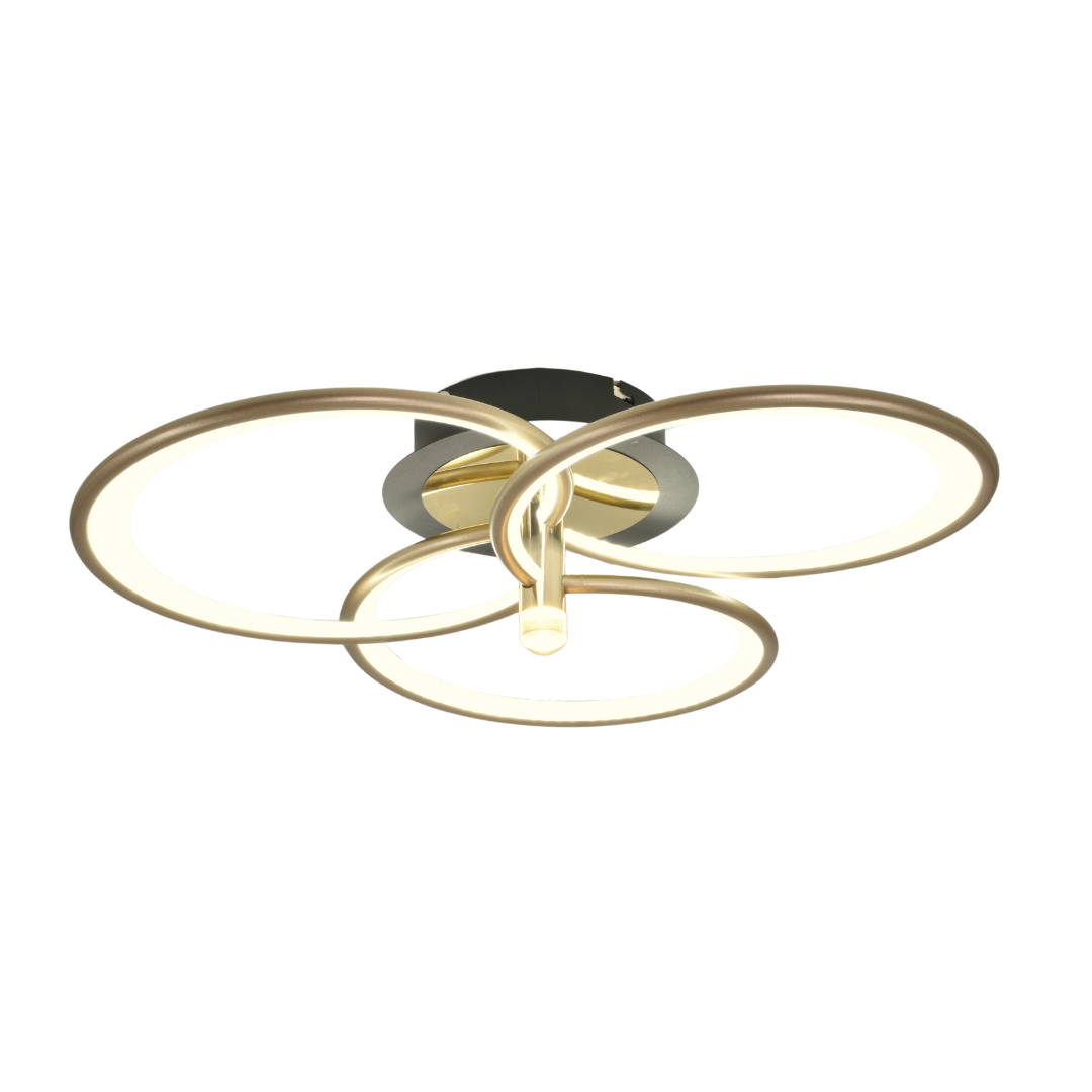 Lustra LED, Cu Telecomanda, 3 Tipuri De Lumina, Intensitate Reglabila, 63W, Negru/Auriu