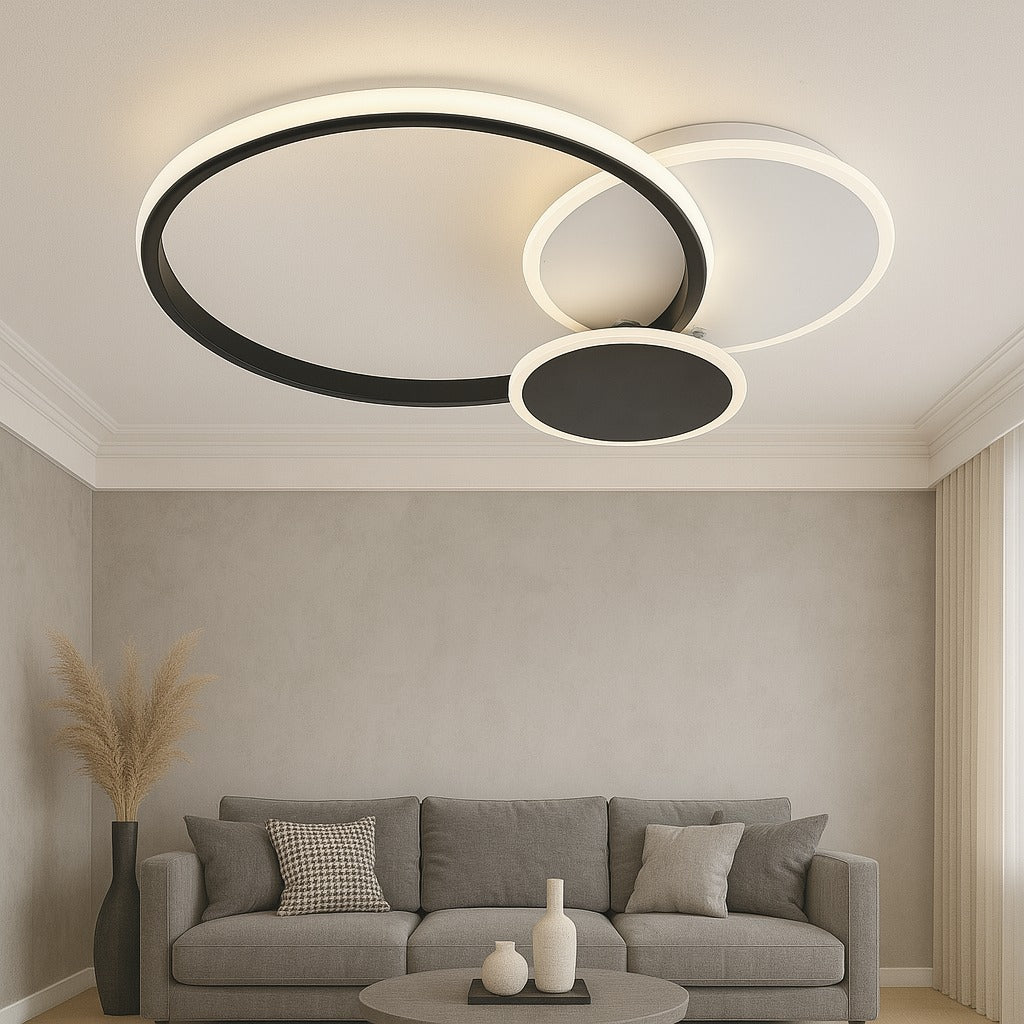 Lustra LED, cu Telecomanda, 3 Tipuri de Lumina, Intensitate Reglabila, 65W, Alb/Negru