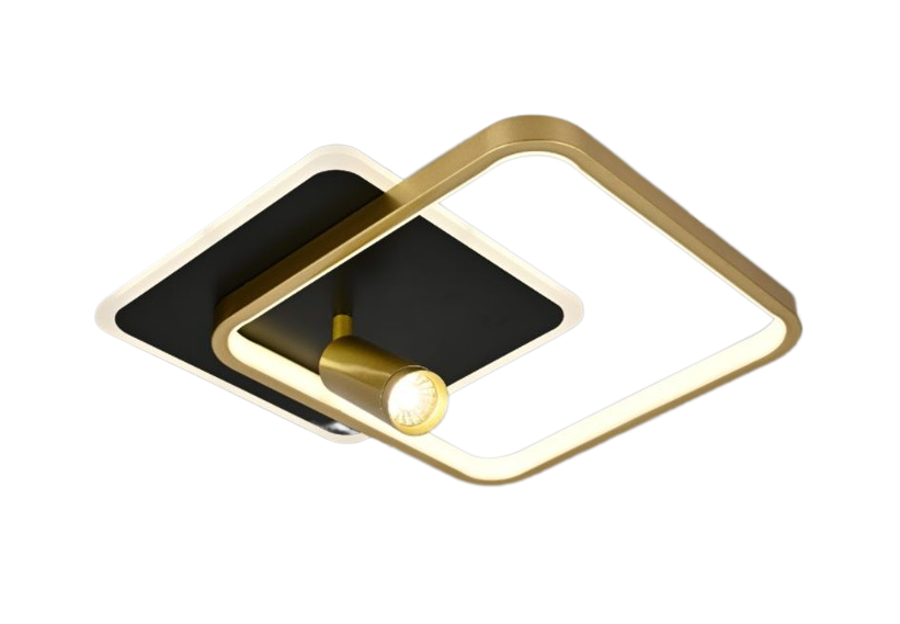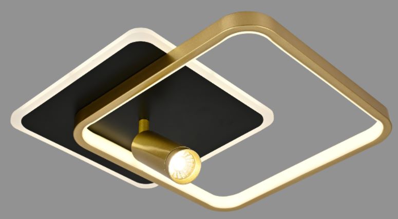 Lustra LED, Cu Telecomanda, 3 Tipuri De Lumina, Intensitate Reglabila, 76W, Negru/Auriu