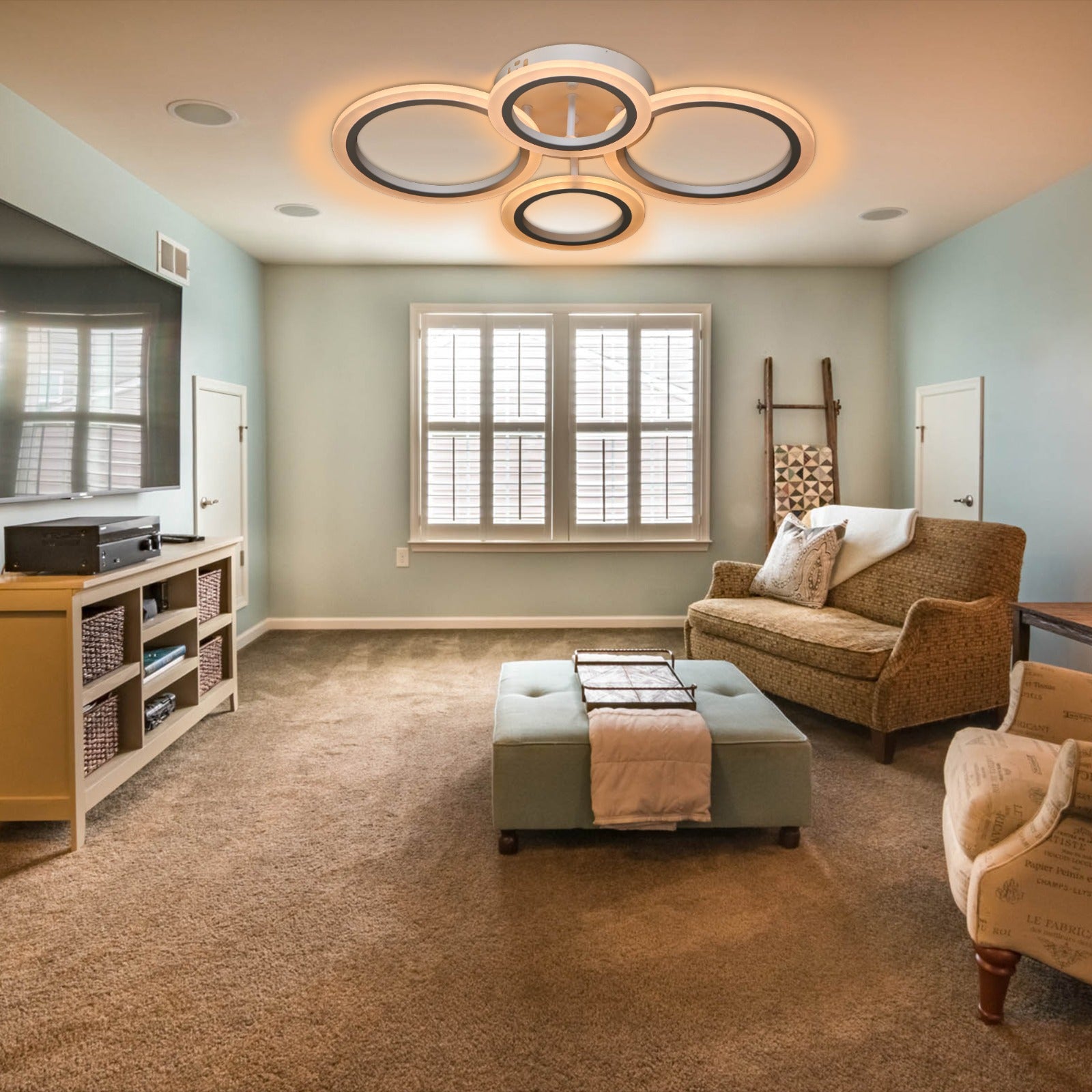 Lustra LED RFAN 4 LED-uri cu telecomanda, 3 tipuri de lumina, intensitate reglabila.