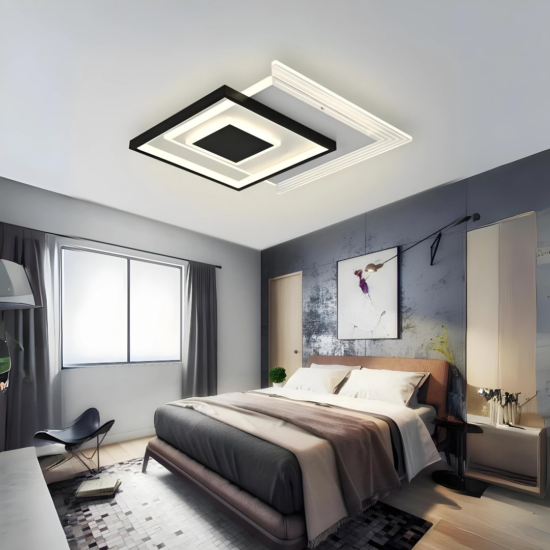 Lustra LED, Cu Telecomanda, 3 Tipuri De Lumina, Intensitate Reglabila, 94W, Negru/Alb