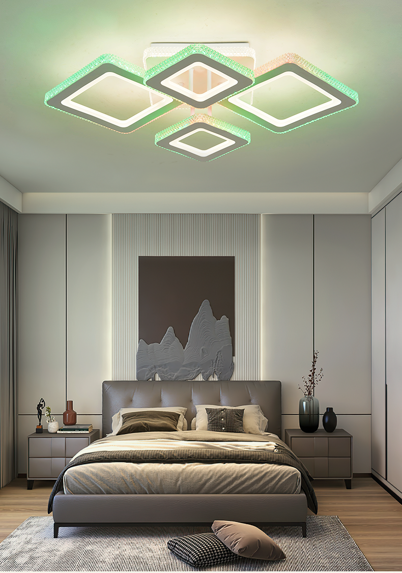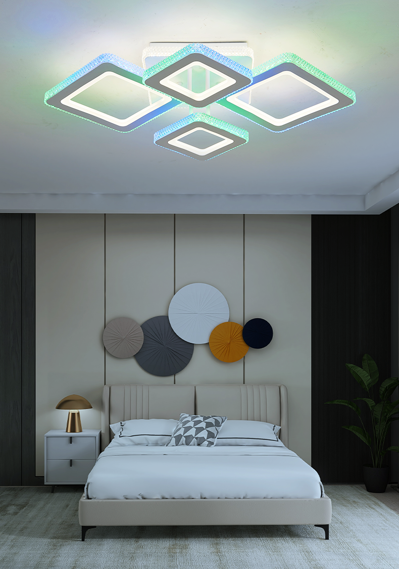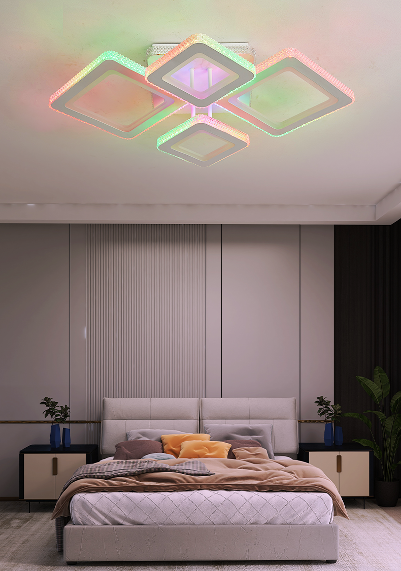 Lustra LED RFAN 9 LED-uri cu telecomanda, 3 tipuri de lumina plus lumina RGB, intensitate reglabila.