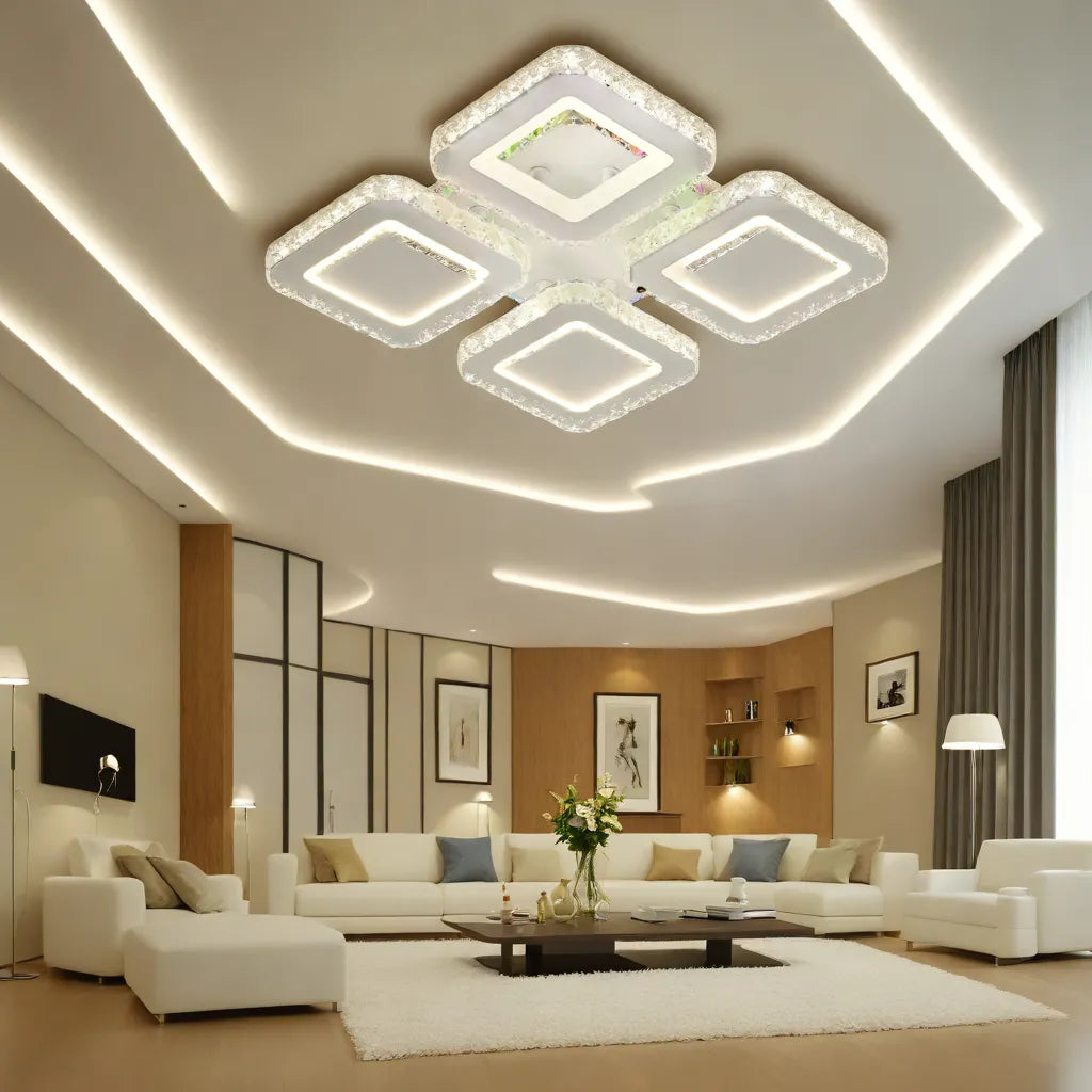 Lustra LED RFAN 9 LED-uri cu telecomanda, 3 tipuri de lumina plus lumina RGB, intensitate reglabila.