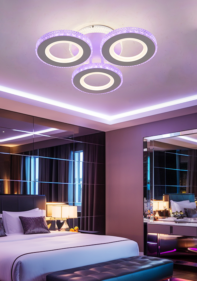 Lustra LED RFAN 7 LED-uri cu telecomanda, 3 tipuri de lumina plus lumina RGB, intensitate reglabila.