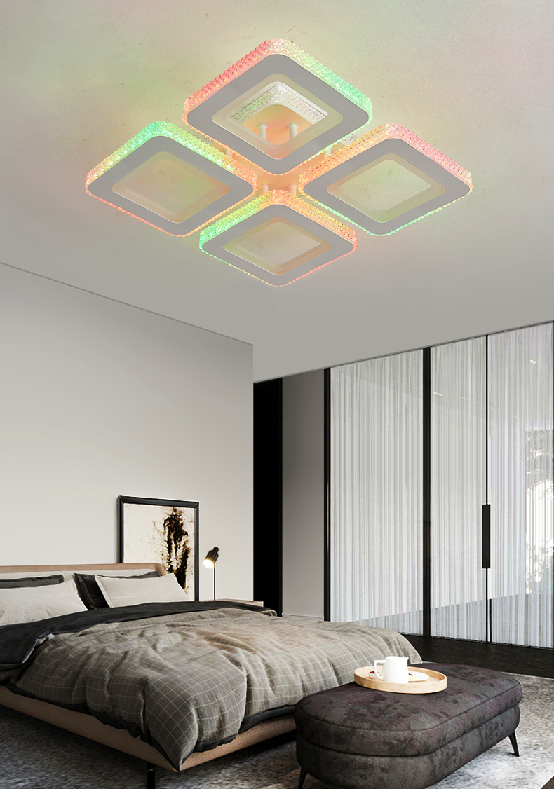 Lustra LED RFAN 9 LED-uri cu telecomanda, 3 tipuri de lumina plus lumina RGB, intensitate reglabila.