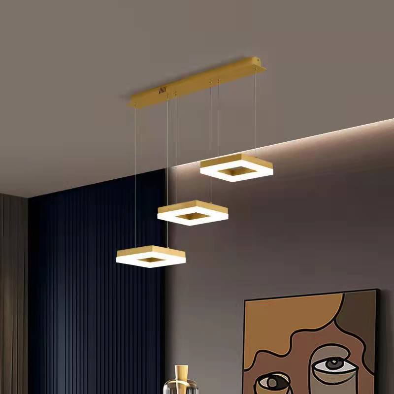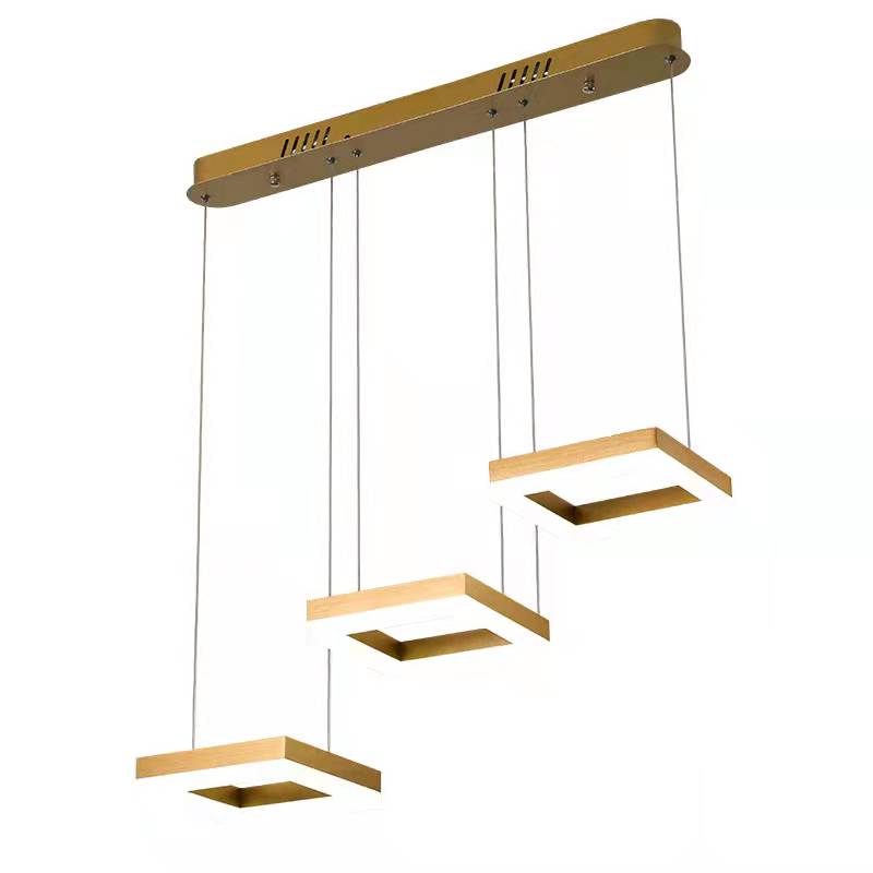 Lustra LED Tip Pendul RFAN, Model F204-3, cu Telecomanda, 3 Tipuri de Lumina, Inaltime Reglabila, 96W, Auriu