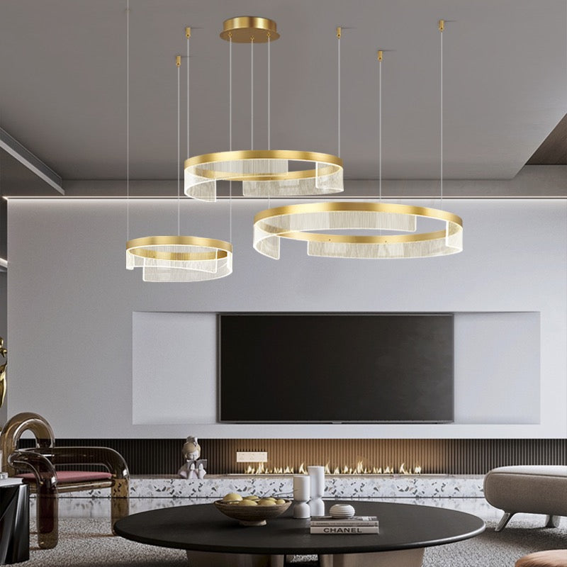 Lustra LED Tip Pendul RFAN, Model F6603-3, Cu Telecomanda, 3 Tipuri De Lumina, Inaltime Reglabila, 144W, Auriu