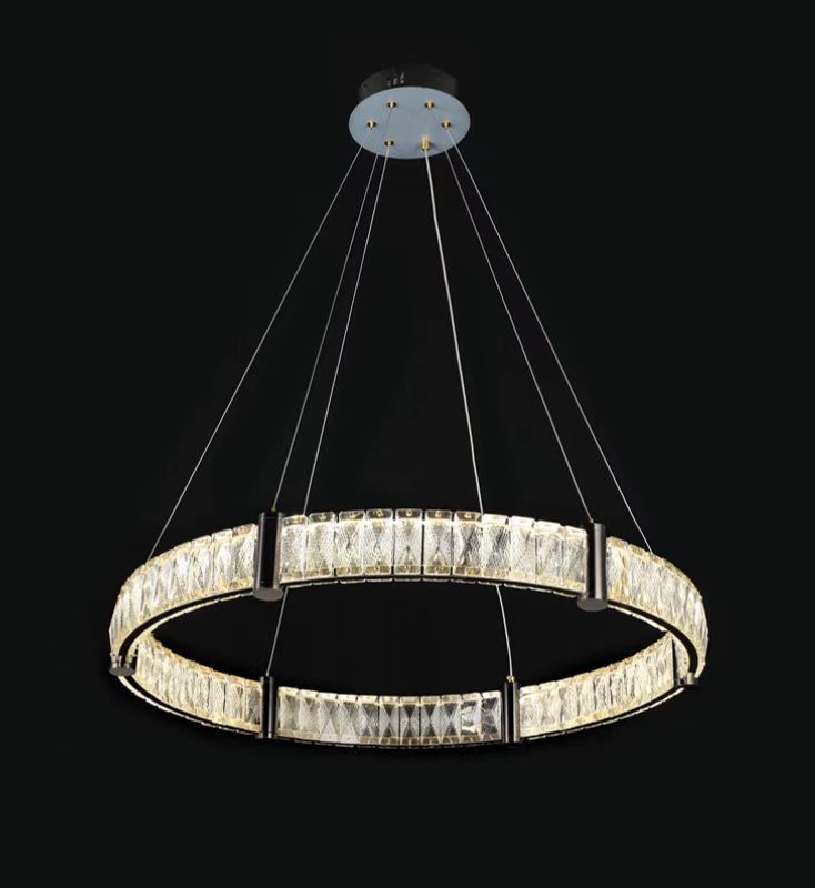 Lustra LED Tip Pendul RFAN, Model R9047-500, Cu Telecomanda, 3 Tipuri De Lumina, Inaltime Reglabila, 118W, Auriu