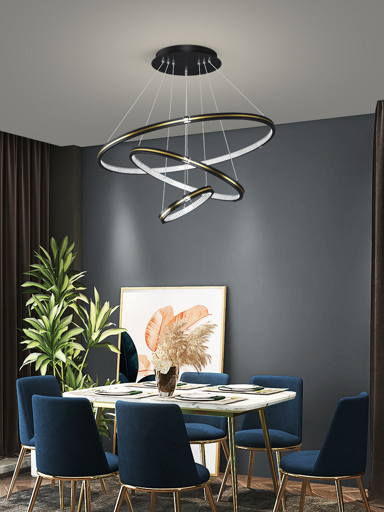 Lustra LED Tip Pendul RFAN, Model R9071/3, Cu Telecomanda, 3 Tipuri De Lumina, Inaltime Reglabila, 148W, Negru/Auriu