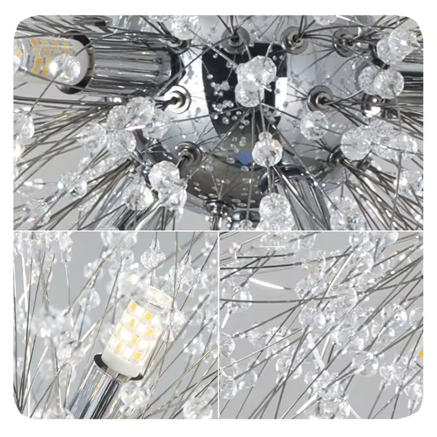 Lustra LED Tip Pendul RFAN, Model R9104/12, Textura Cristal, Metal, 12 X G9, Argintiu