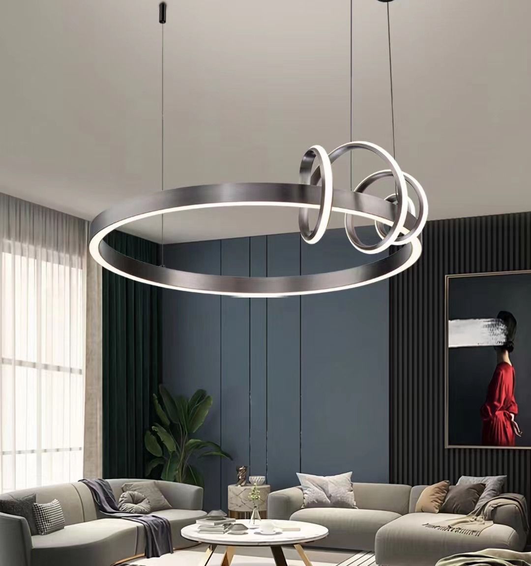Lustra LED Tip Pendul RFAN, Model R9147/600, Cu Telecomanda, 3 Tipuri De Lumina, Inaltime Reglabila, 70W, Gri