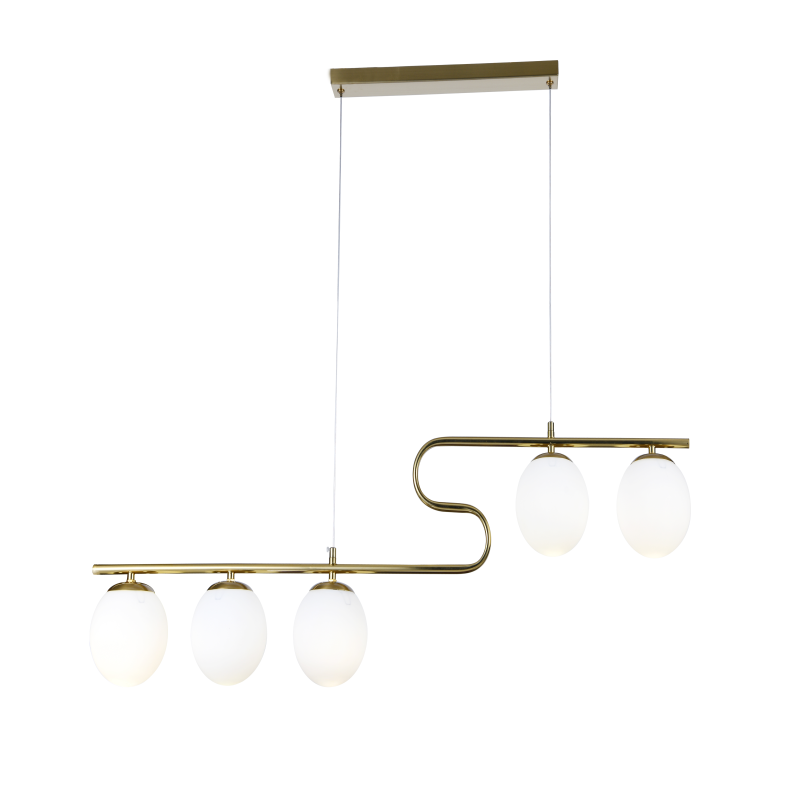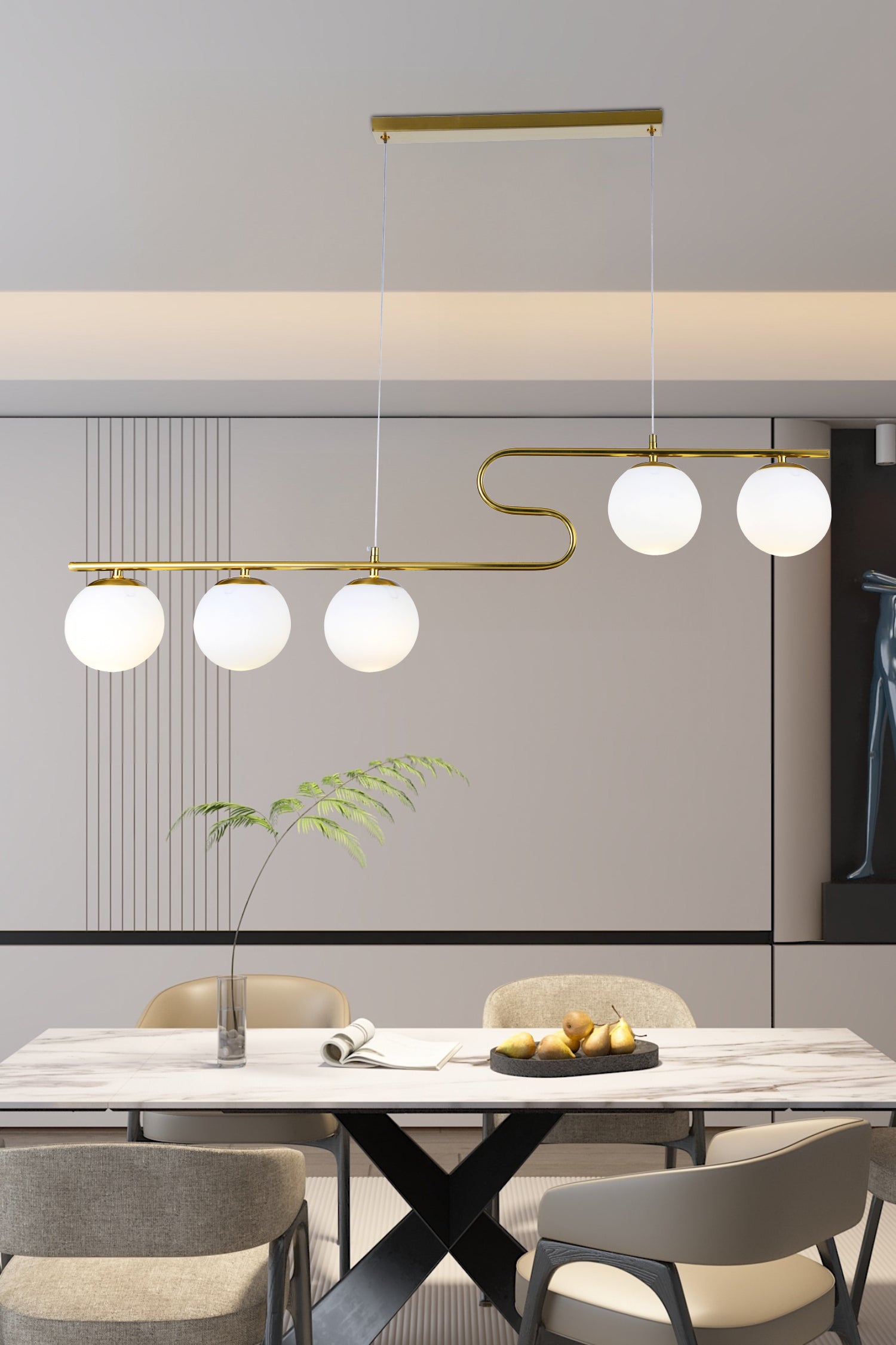 Lustra RFAN, Model 5505/5, aduce un plus de eleganță și stil oricărui spațiu. Cele 5 abajururi asigură o iluminare uniformă, în timp ce cele 5 socluri G9 oferă opțiuni variate de iluminat. Designul său auriu aduce o notă sofisticată și se integrează armonios într-o varietate de amenajări interioare.