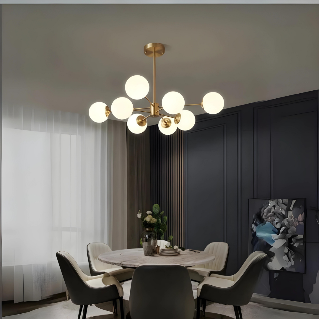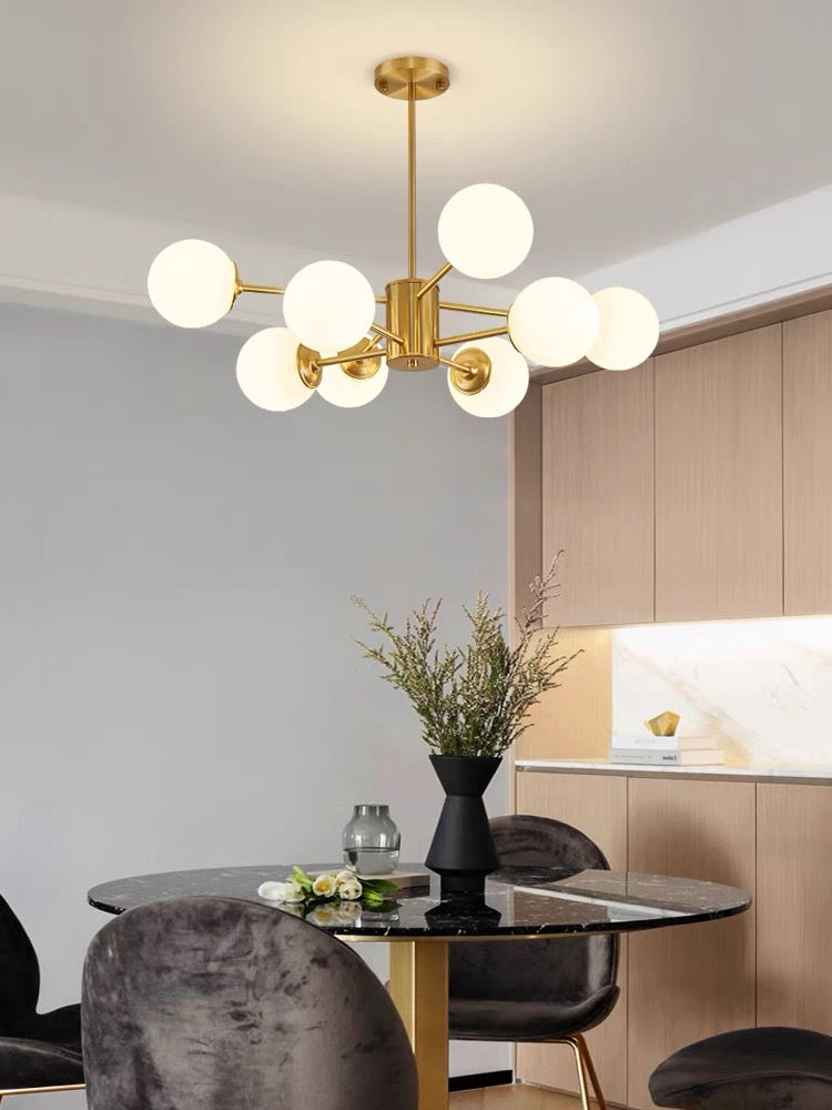 Lustra RFAN, Model 5506/8, aduce un plus de eleganță și stil oricărui spațiu. Cele 8 abajururi asigură o iluminare uniformă, în timp ce cele 8 socluri E27 oferă opțiuni variate de iluminat. Designul său auriu aduce o notă sofisticată și se integrează armonios într-o varietate de amenajări interioare.