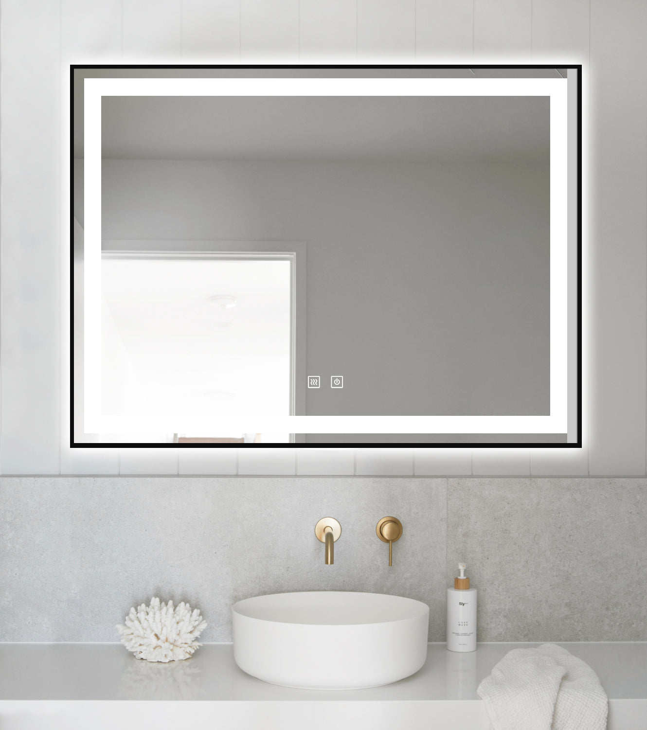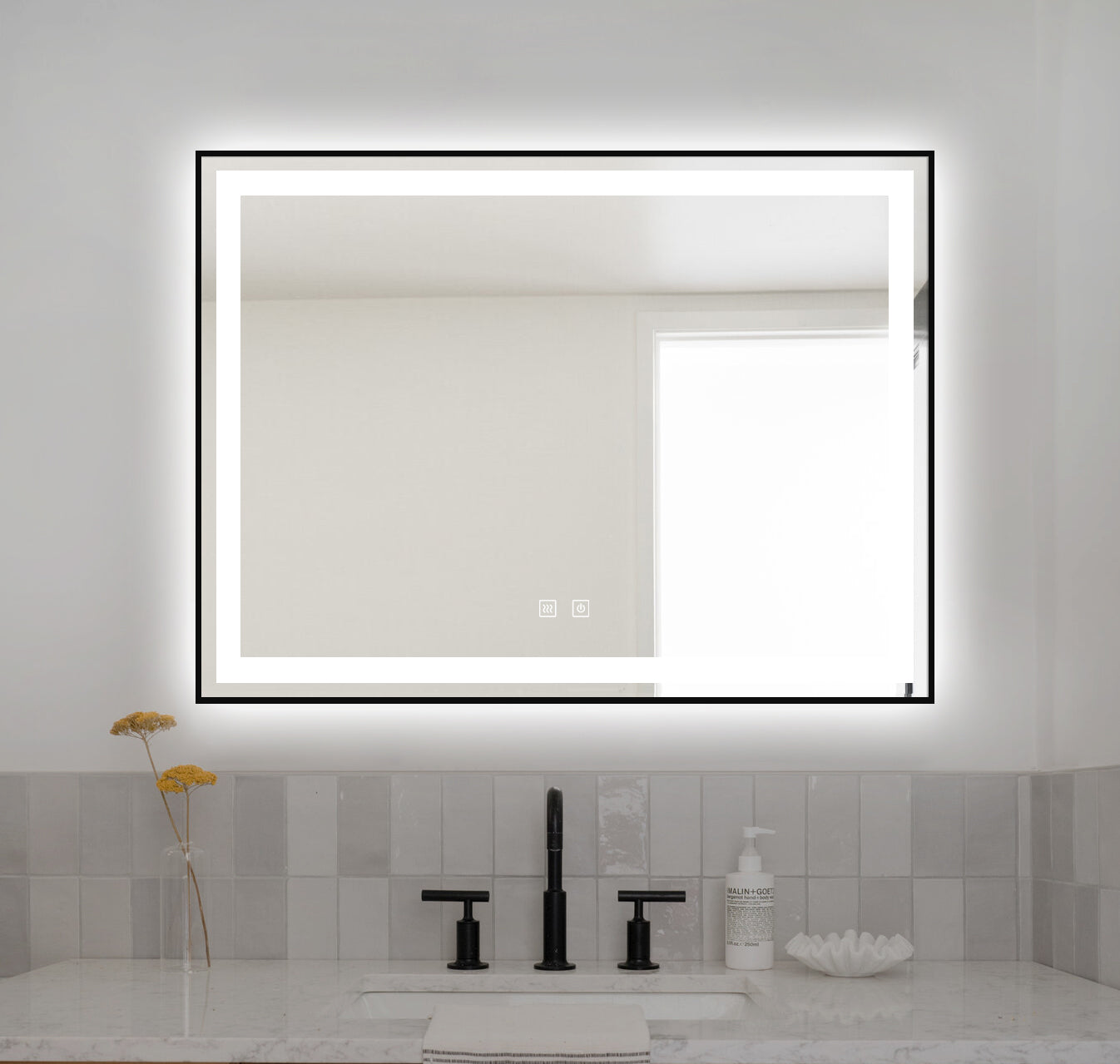 Oglinda LED Si Touch, 80 X 60 Cm, Cu Functie Dezaburire, Rama Negru Mat, J11, Smack