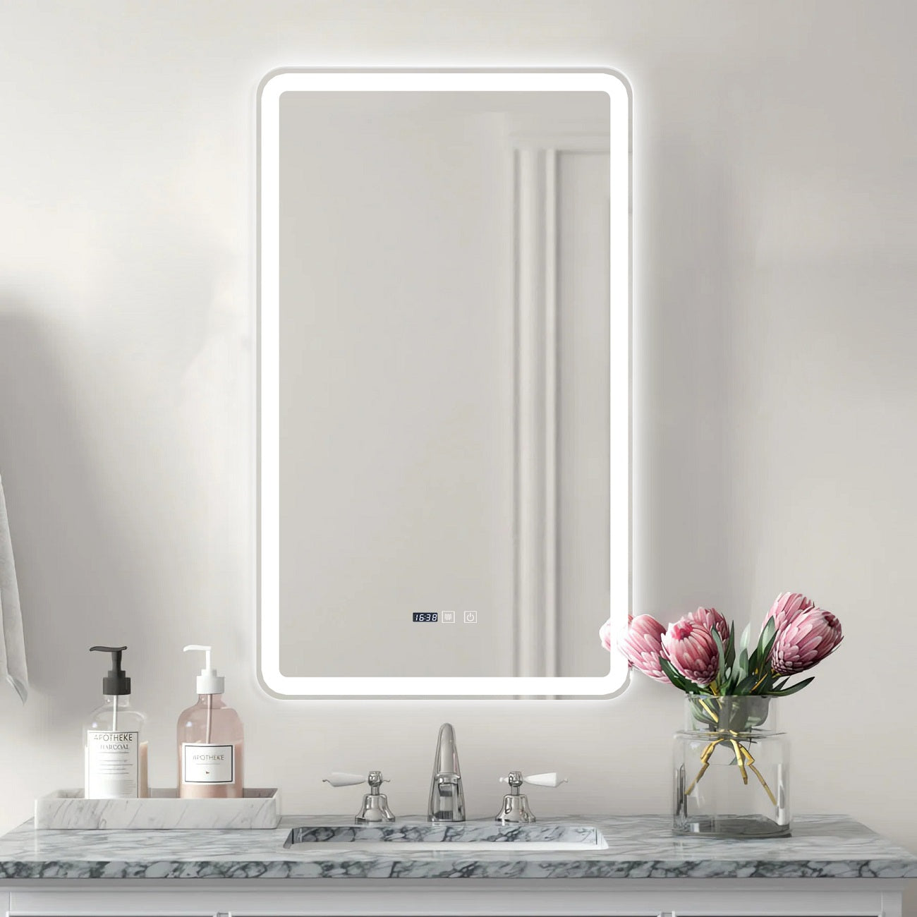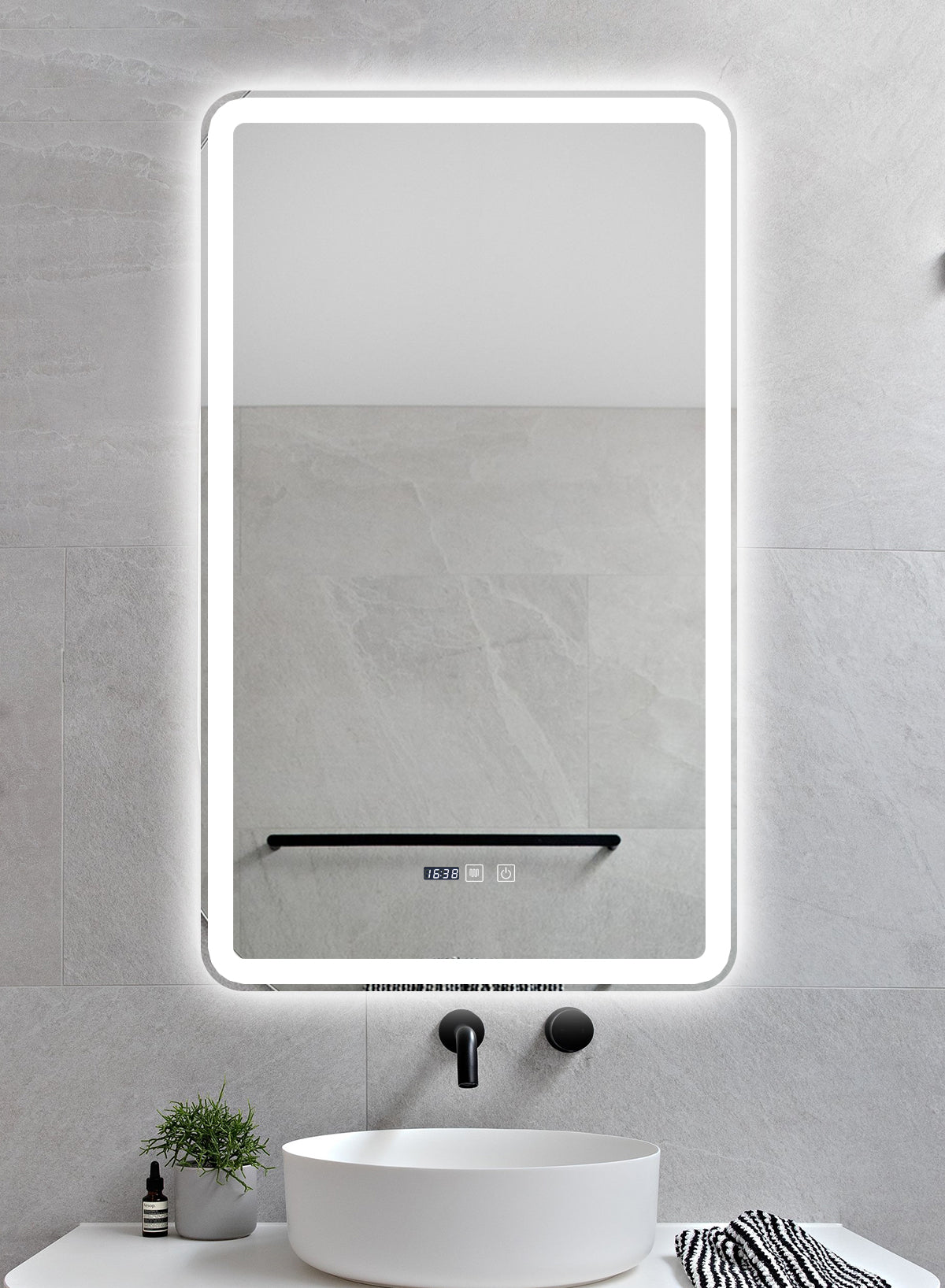 Oglinda LED si Touch, cu Functie Dezaburire si Ceas, 3 Tipuri De Lumina, 60x100 cm, J169 Smack