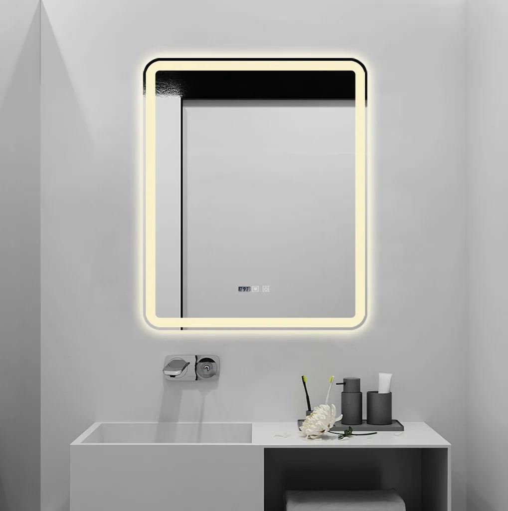 Oglinda LED si Touch, cu Functie Dezaburire si Ceas, 3 Tipuri De Lumina, 75x90 cm, J169 Smack