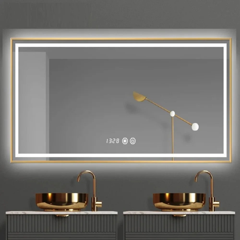 Oglinda LED Si Touch, Cu Functie Dezaburire Si Ceas, Rama Bronz Antichizat, 120x80 cm, J47 Smack