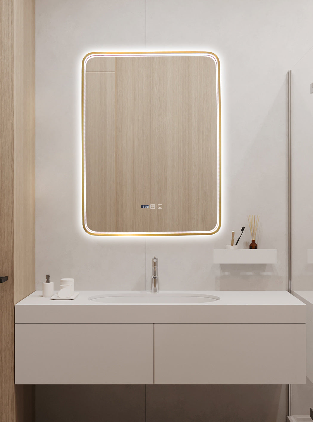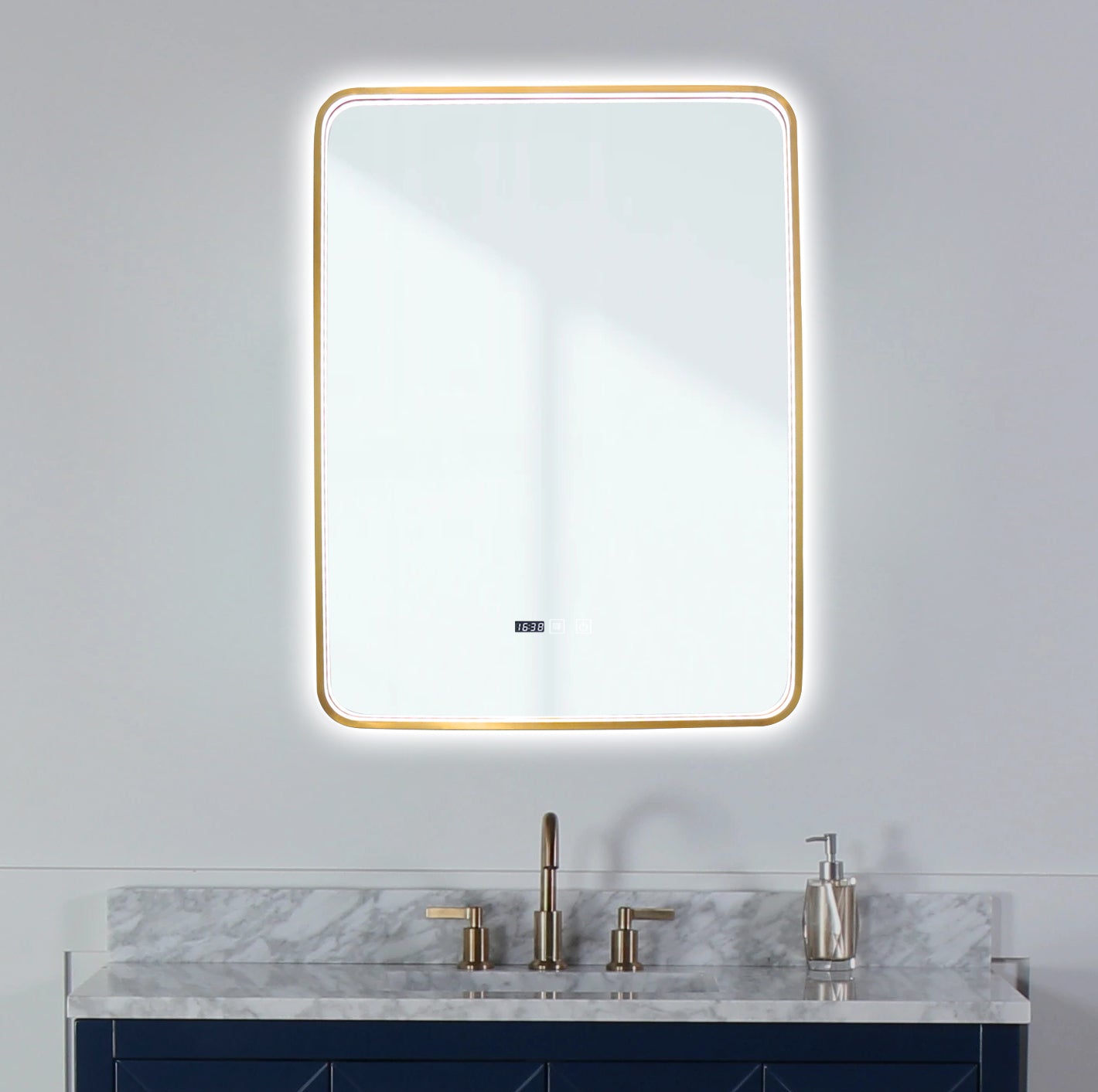 Oglinda LED Si Touch, Model 1068-G, Cu Functie Dezaburire Si Ceas, Rama Auriu-Bronz, 60 X 80 Cm, Smack