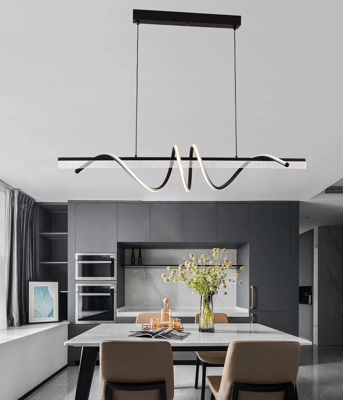 Un pendul deasupra mesei va crea mici oaze de calm si relaxare, unde vei putea sa savurezi o cina in tihna cu cei dragi, sa lucrezi sau sa citesti.
