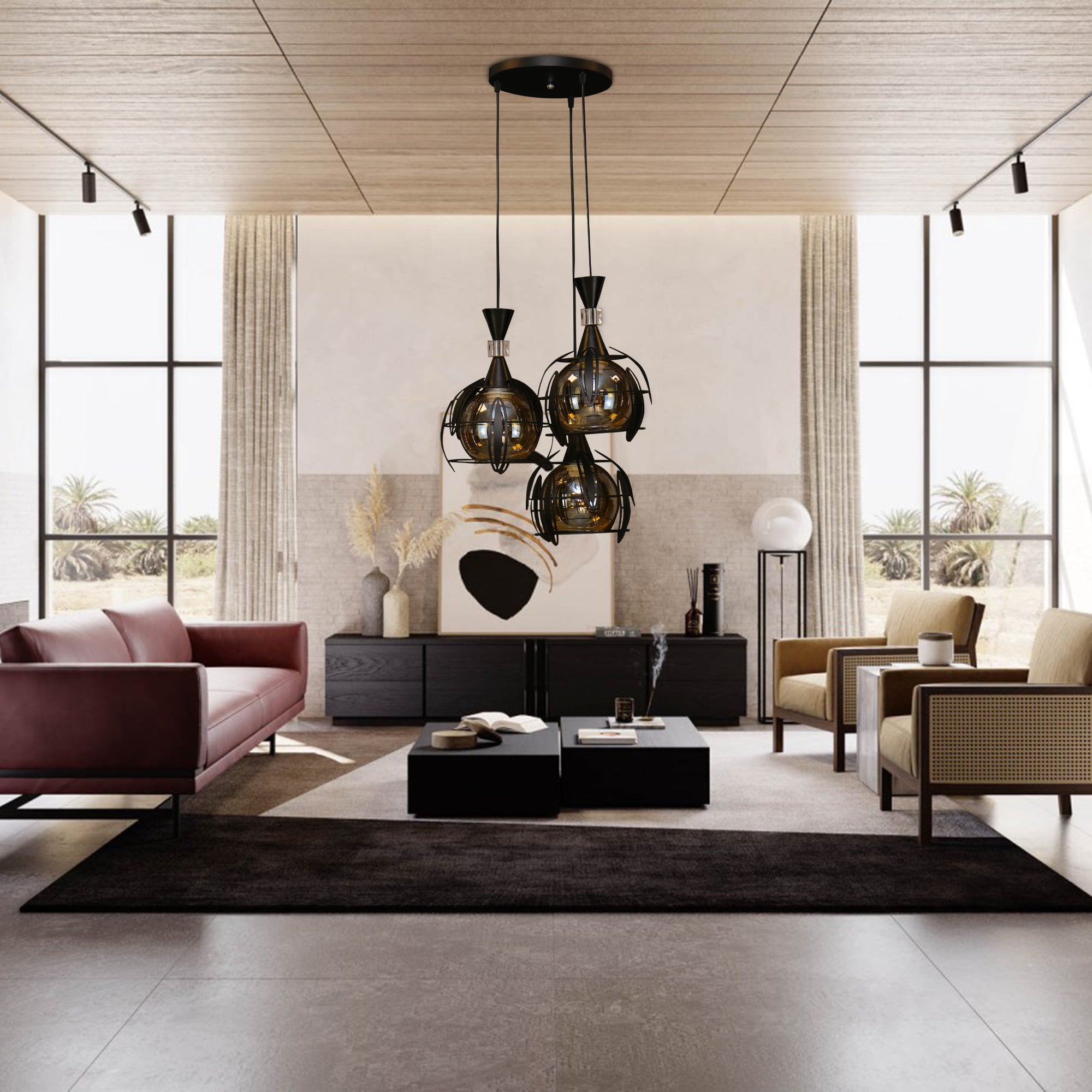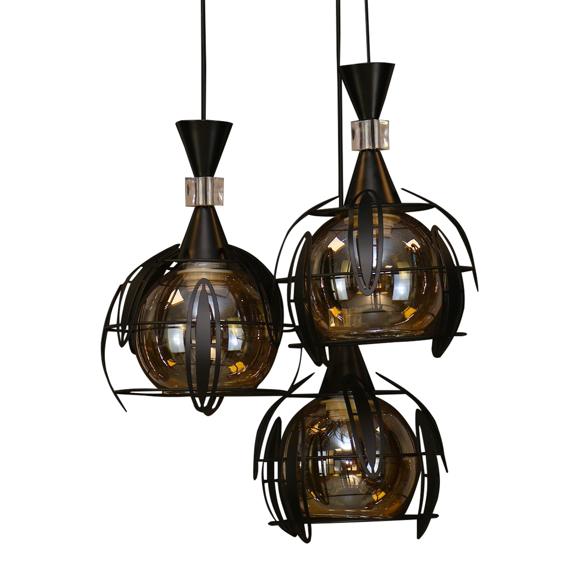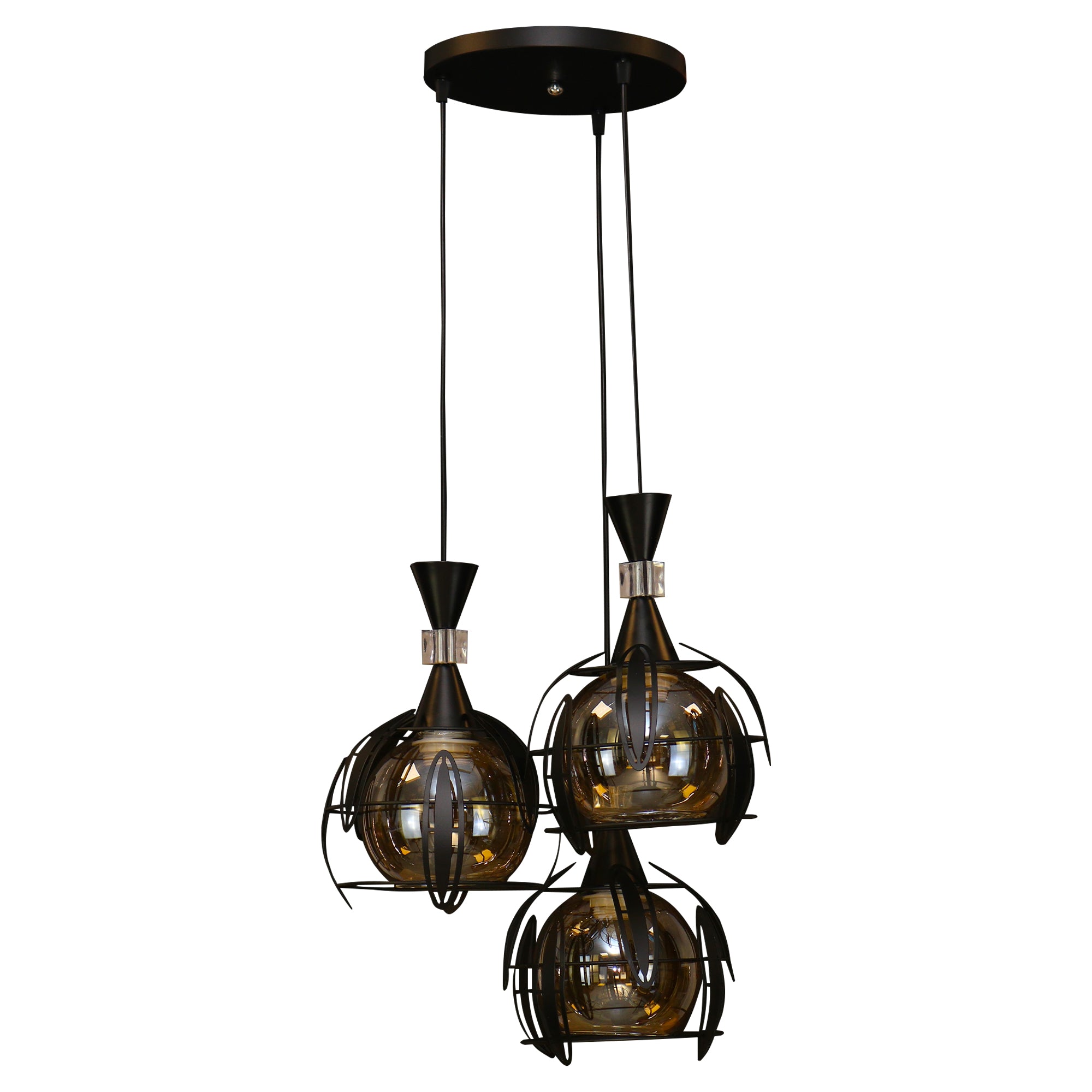 Pendul RFAN, Model 4080-3, cu Abajur, 3 x E27, Inaltime Reglabila, Negru