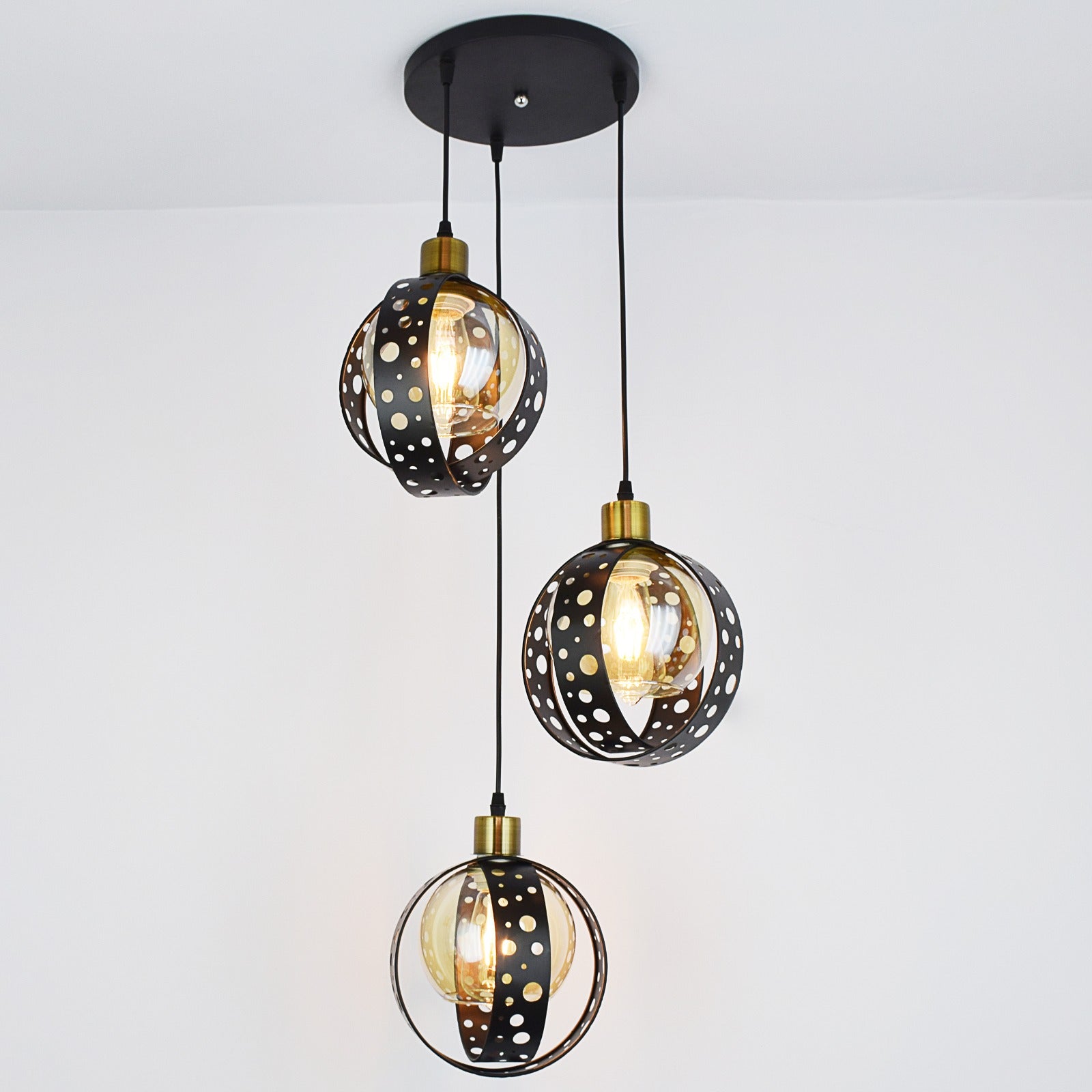 Pendul RFAN, Model 4178/3, cu Abajur, 3 x E27, Inaltime Reglabila, Negru