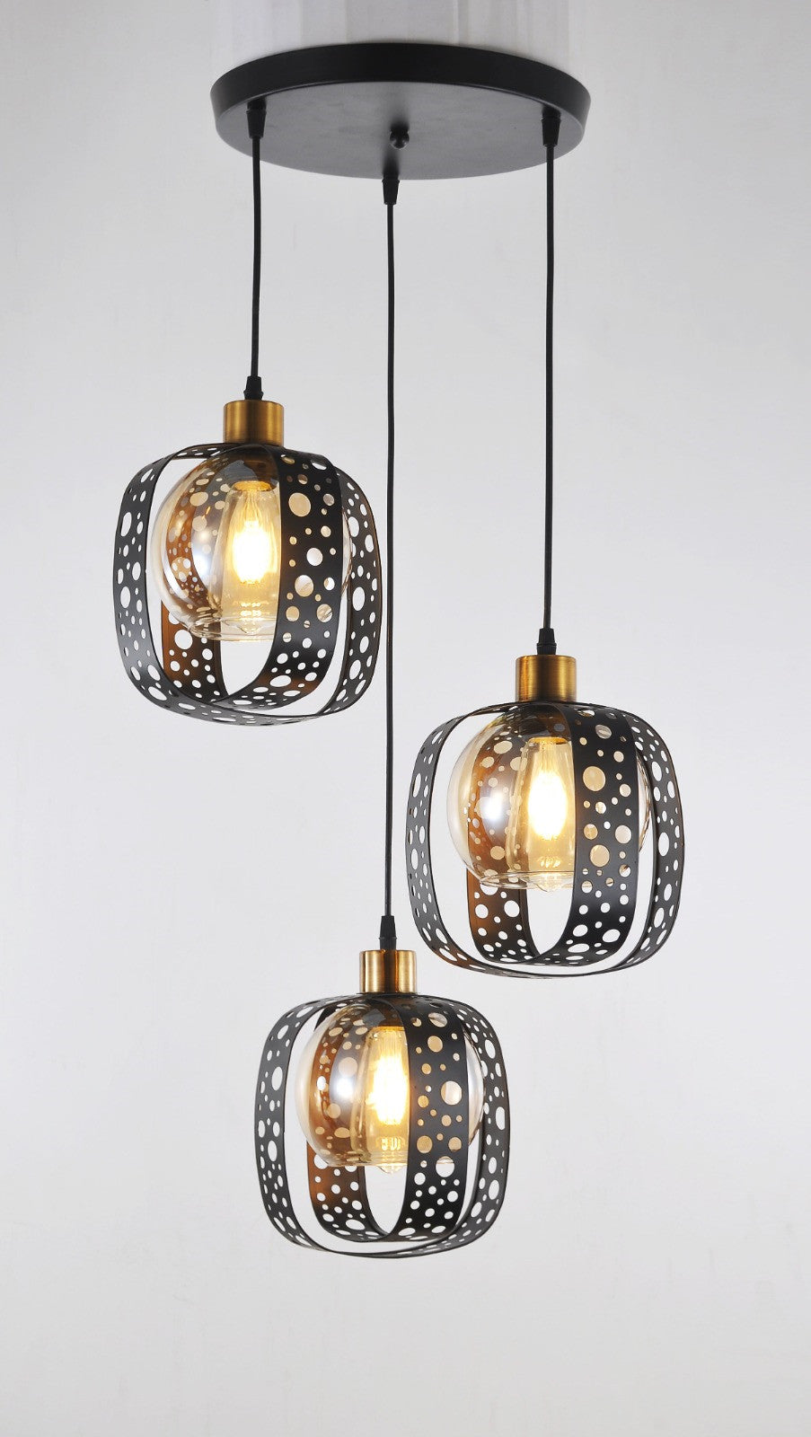 Pendul RFAN, Model 4186-3, Cu Abajur, 3 X E27, Inaltime Reglabila, Negru