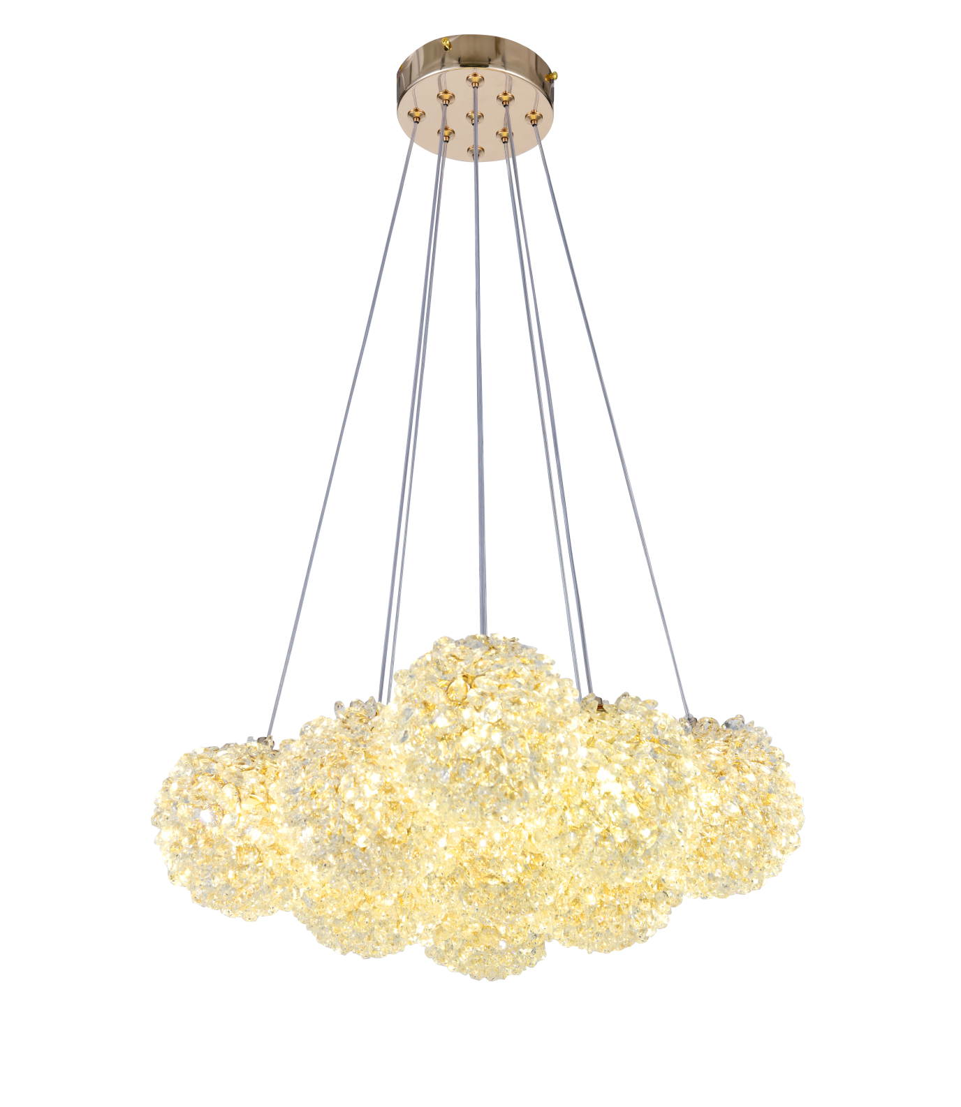 Pendul RFAN, Model 5558-9, Cu 9 Abajururi, 9 x G9, Inaltime Reglabila, Auriu