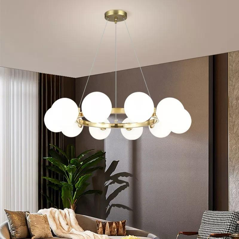 Pendul RFAN, Model 5750/10, Cu 10 Abajururi, Inaltime Reglabila, 10 x E27, Auriu/Alb