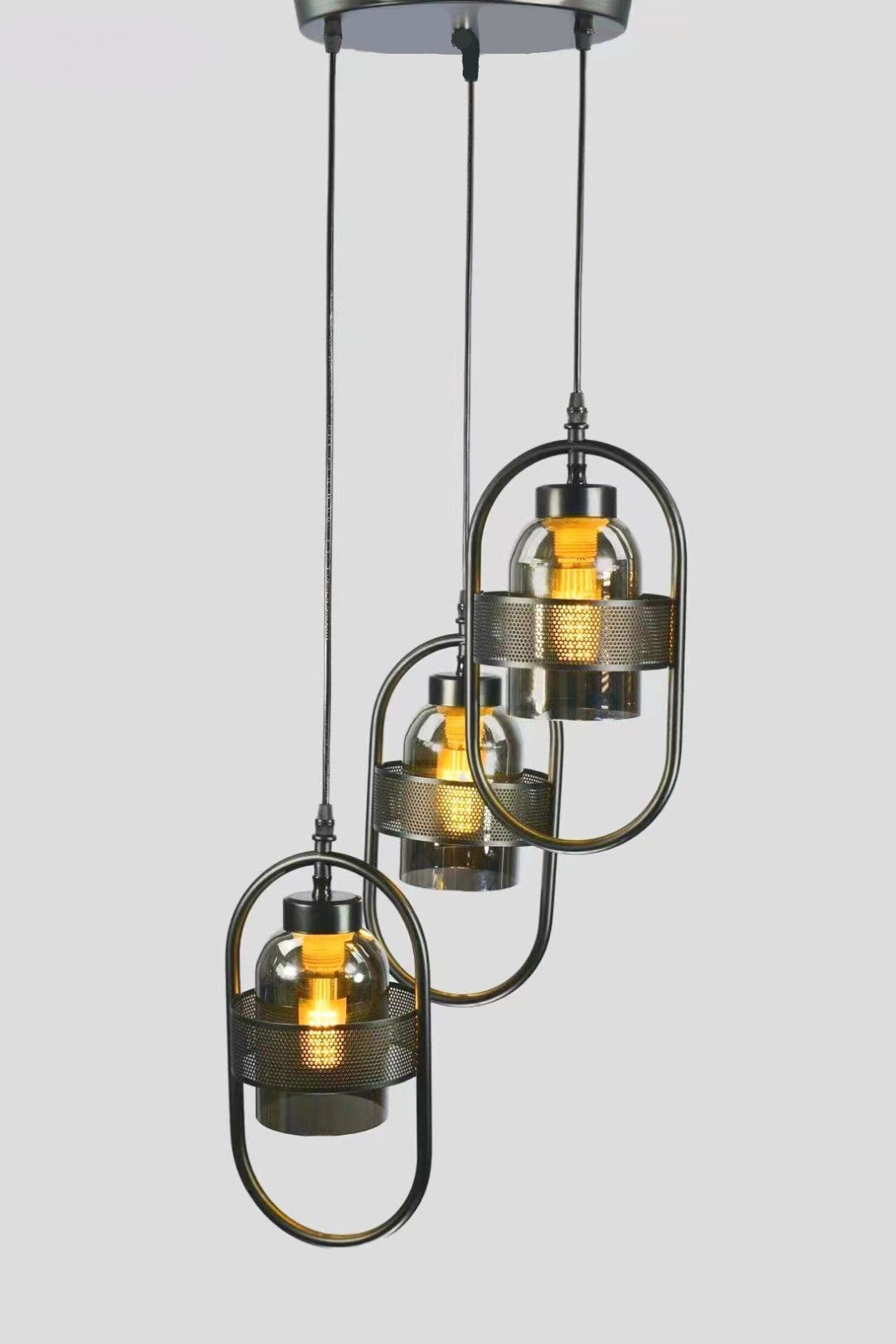 Pendul RFAN, Model 8319-3, cu Abajur, 3 x E27, Inaltime Reglabila, Negru