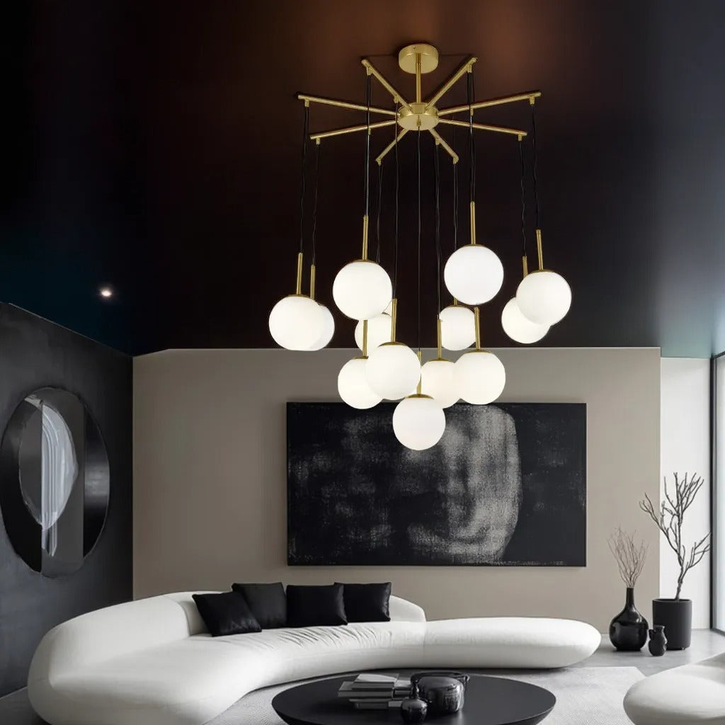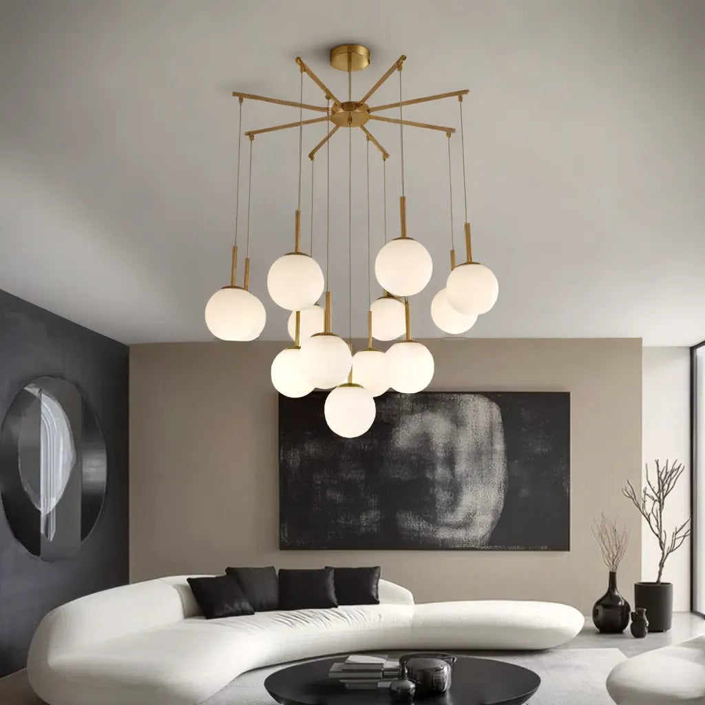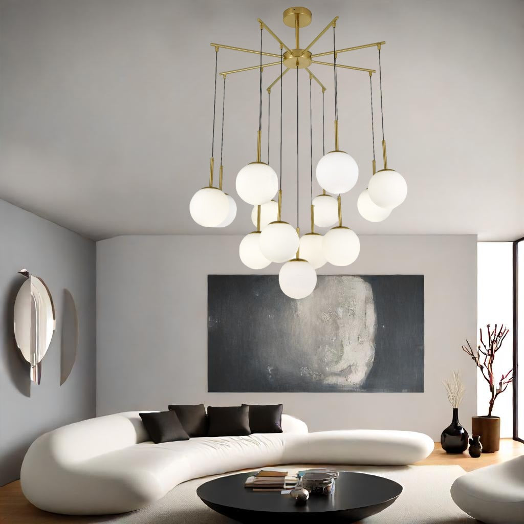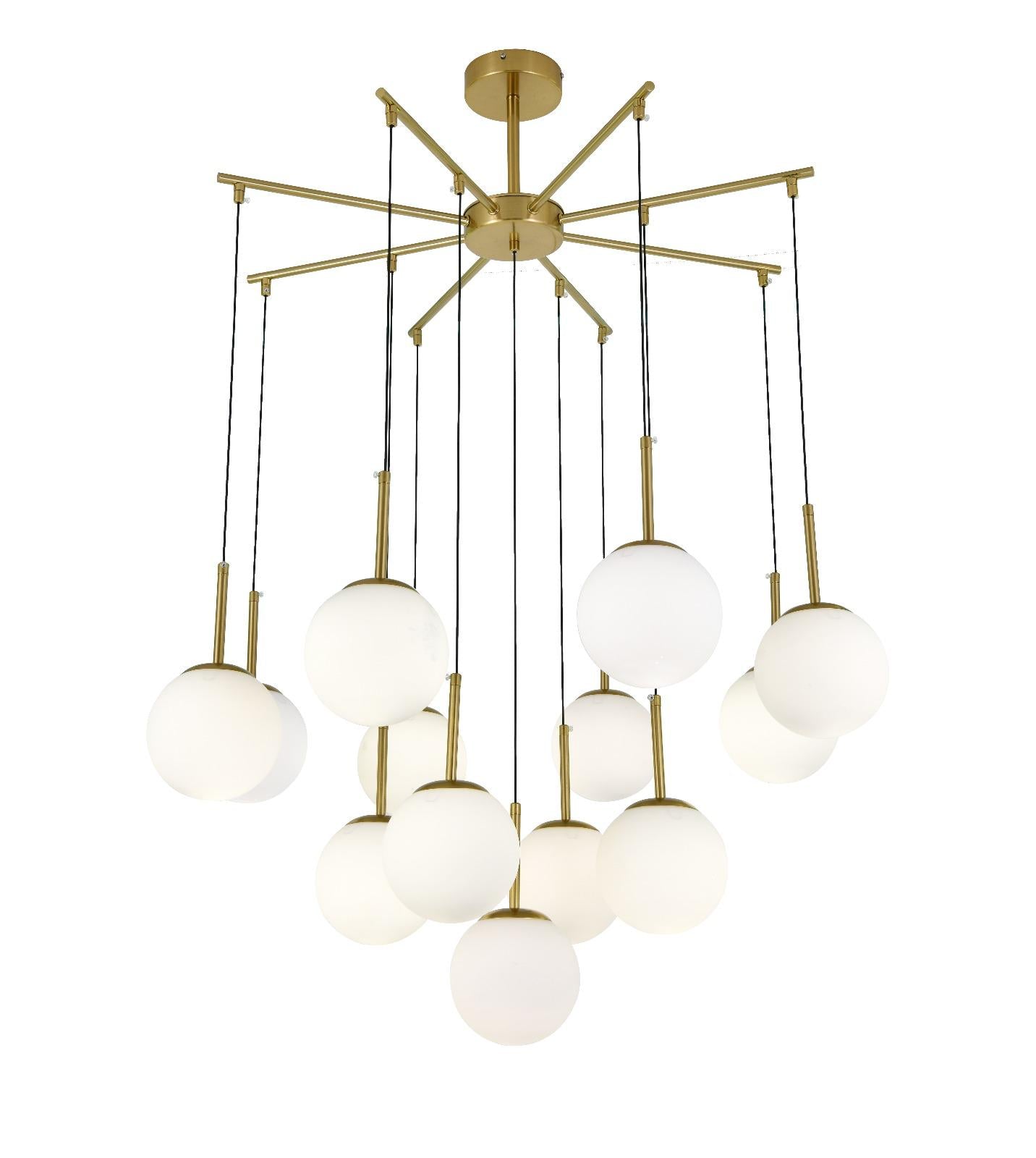 Pendul RFAN, Model F006/13, Cu 13 Abajururi, 13 x E27, Inaltime Reglabila, Auriu/Alb