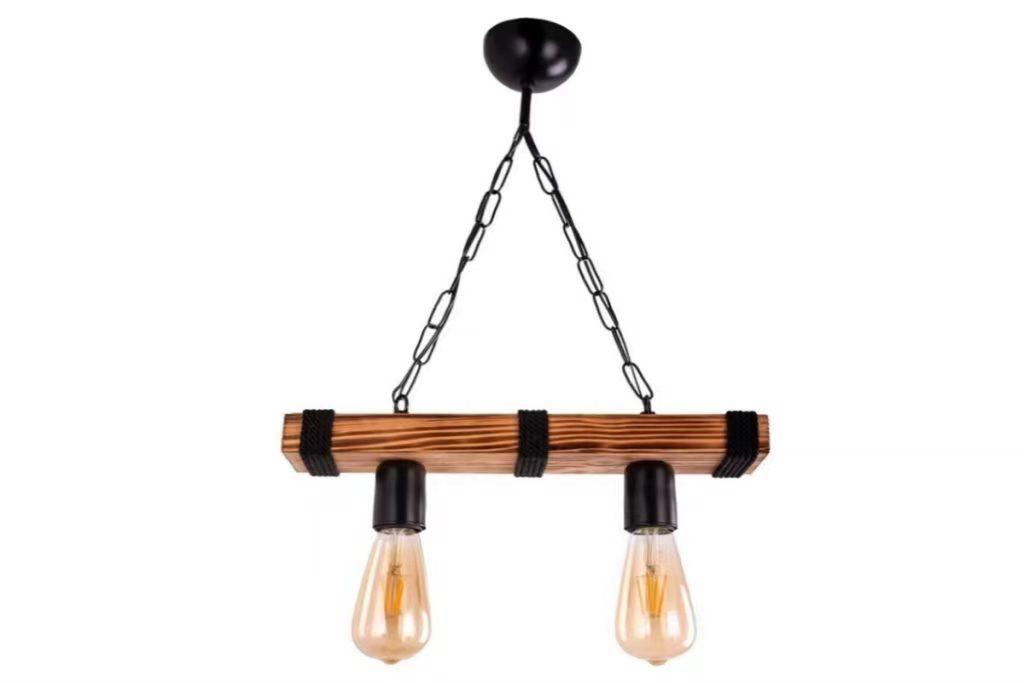 Pendul Rustic RFAN, Model 5718-2, 2 x E27, Inaltime Reglabila, Negru