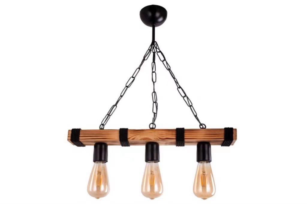 Pendul Rustic RFAN, Model 5718-3, 3 x E27, Inaltime Reglabila, Negru