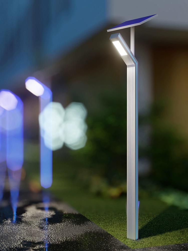 Tipul de lumina al stalpului este rece, echipat cu LED Philips, iar pe lateralele acestuia este echipat cu banda LED, lumina albastra.